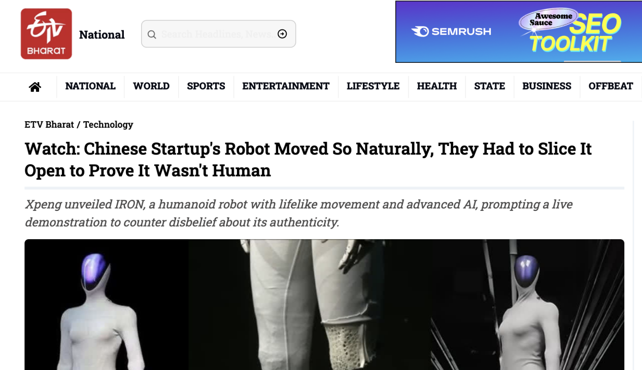 外媒:人形机器人IRON动作过于逼真引质疑 小鹏发布会现场切开机器人