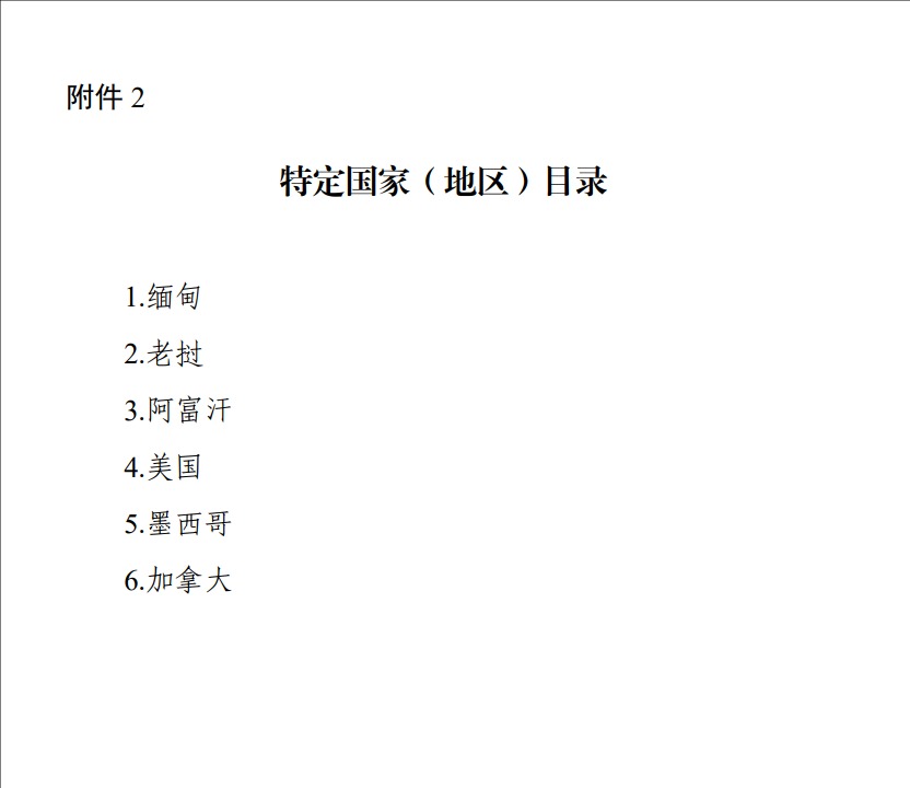 为进一步做好易制毒化学品出口管理工作,根据《向特定国家(地区)出口易制毒化学品暂行管理规定》,商务部、公安部、应急管理部、海关总署和国家药监局决定对《向特定国家(地区)出口易制毒化学品管理目录》《特定国家(地区)目录》进行调整,将美国、墨西哥、加拿大增列入《特定国家(地区)目录》,并单独增列针对上述3个国家的13种易制毒化学品。
