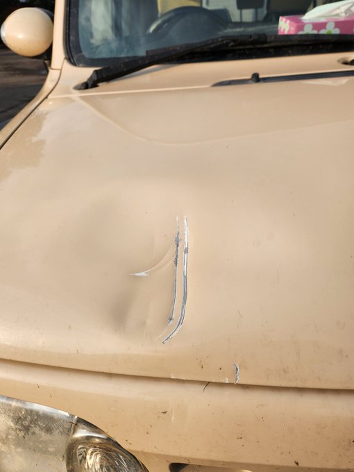据报道,事件发生于6日,地点位于北海道浦河町。视频中可以听到熊敲打引擎盖的声音。