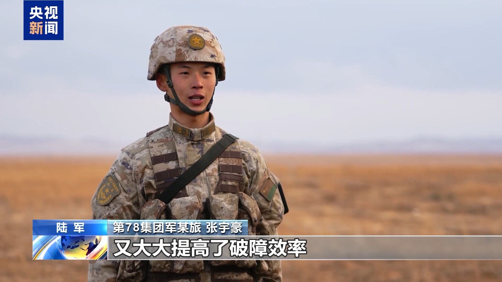 *第78集团军某旅 张宇豪:*机器狗在前面探路爆破,步战车在后面掩护,空中还有无人机进行侦察,这样既减少了人员的受伤风险,又大大提高了破障效率。