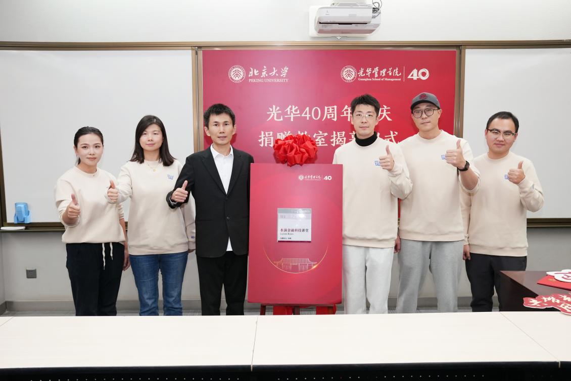 【环球网财经综合报道】11月5日,北京水滴科技集团有限公司(简称:水滴公司;NYSE: WDH)在北京大学光华管理学院1号楼111教室举办校园招聘宣讲会,沈鹏分享了自己多年来的创业经验,并与现场100多名北京大学在校生面对面交流就业与职业发展话题。随后,北京大学光华管理学院在该教室举办了“光华40周年院庆——捐赠教室揭幕仪式”,水滴公司正式冠名光华管理学院1号楼111教室为“水滴金融科技讲堂”。北京大学光华管理学院院长刘俏教授出席活动,向北京大学光华管理学院校友、水滴公司创始人兼CEO沈鹏颁发“北京大学教育贡献奖”,以表彰其积极支持母校发展以及在学校和学院人才培养、教学科研和发展建设上所作贡献。