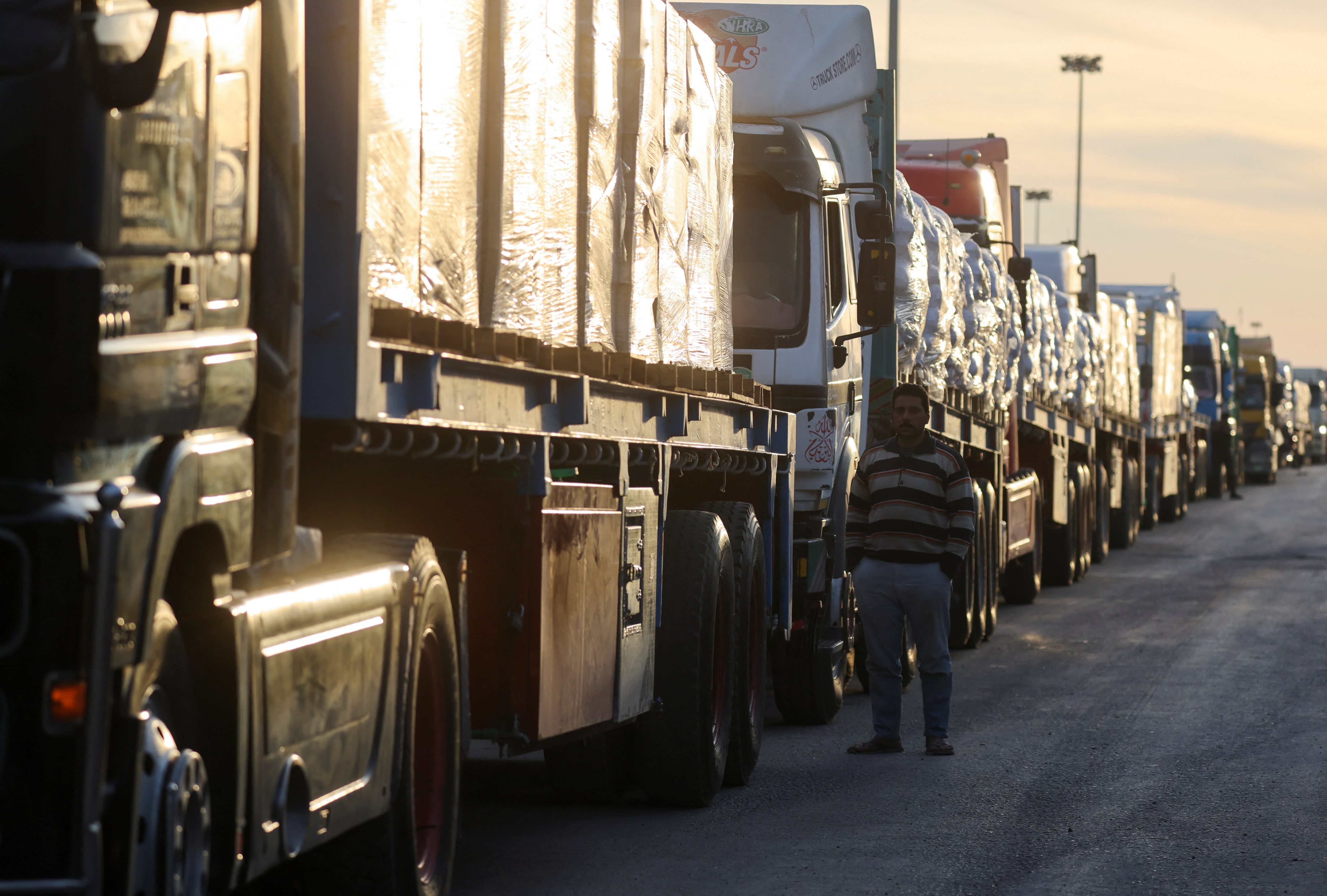 一名男子站在等待在埃及与加沙地带之间的拉法边境口岸的运送援助的卡车旁,在以色列与哈马斯之间的停火期间,地点在埃及拉法,日期为2025年1月19日。路透社/穆罕默德·阿卜杜·埃尔·加尼南卡罗来纳州北查尔斯顿,1月19日(路透社)- 美国总统乔·拜登欢迎加沙的停火,并表示数百辆卡车正在进入这个海滨飞地,以帮助其平民。“今天,加沙的枪声已经沉寂,”拜登在南卡罗来纳州北查尔斯顿的简短讲话中说道。“我们预计几百辆卡车将进入加沙地带,可能就在我发言的时候。”