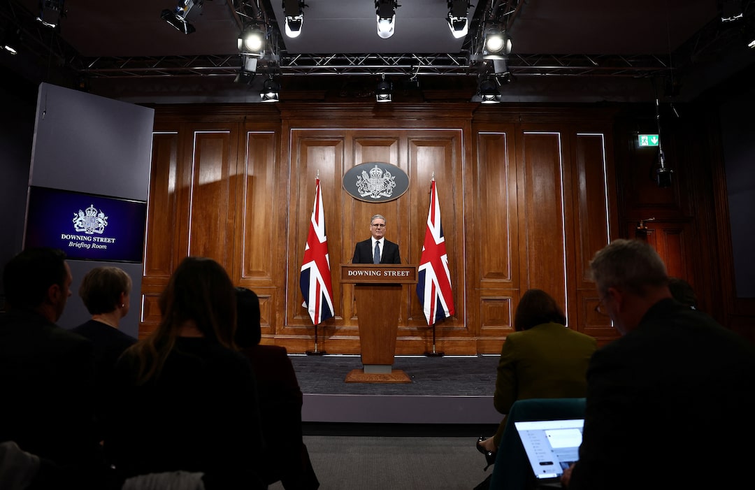 项目 1 共 3 英国首相基尔·斯塔默在2025年1月21日伦敦市中心唐宁街简报室举行的新闻发布会上发言,此次发布会是在南港袭击者阿克塞尔·鲁达库巴纳认罪后举行的。亨利·尼科尔斯/池 via 路透社