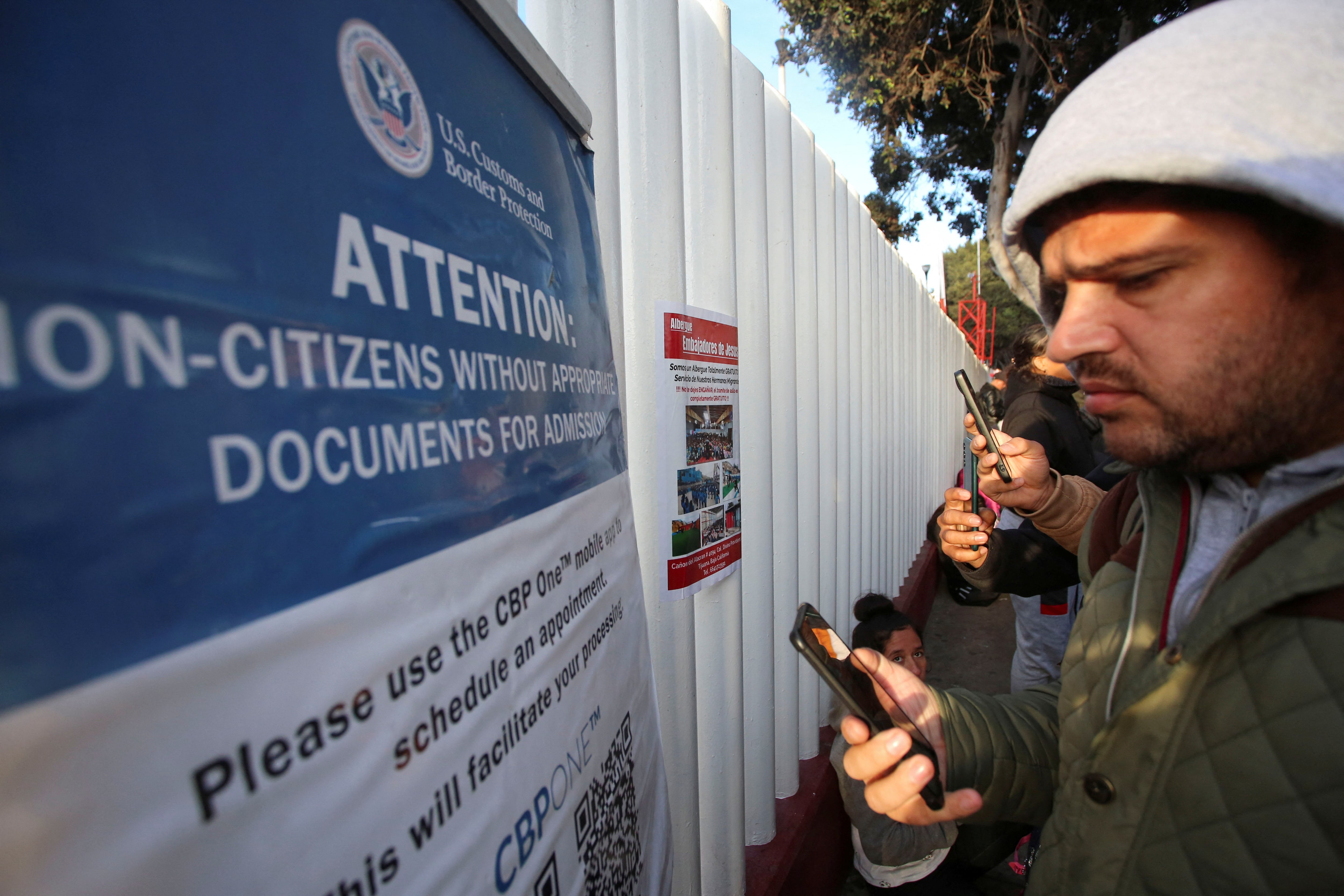 移民在墨西哥蒂华纳的El Chaparral边境口岸聚集时查看手机,因为他们的CBP One应用程序的庇护预约在美国总统唐纳德·特朗普就职当天被取消,时间是2025年1月20日。路透社/豪尔赫·杜埃内斯/档案照片华盛顿,1月21日(路透社) - 特朗普政府正在进行有针对性的移民执法行动,白宫边境负责人周二告诉CNN,并补充说,一个现在已暂停的难民项目在继续之前需要审查。