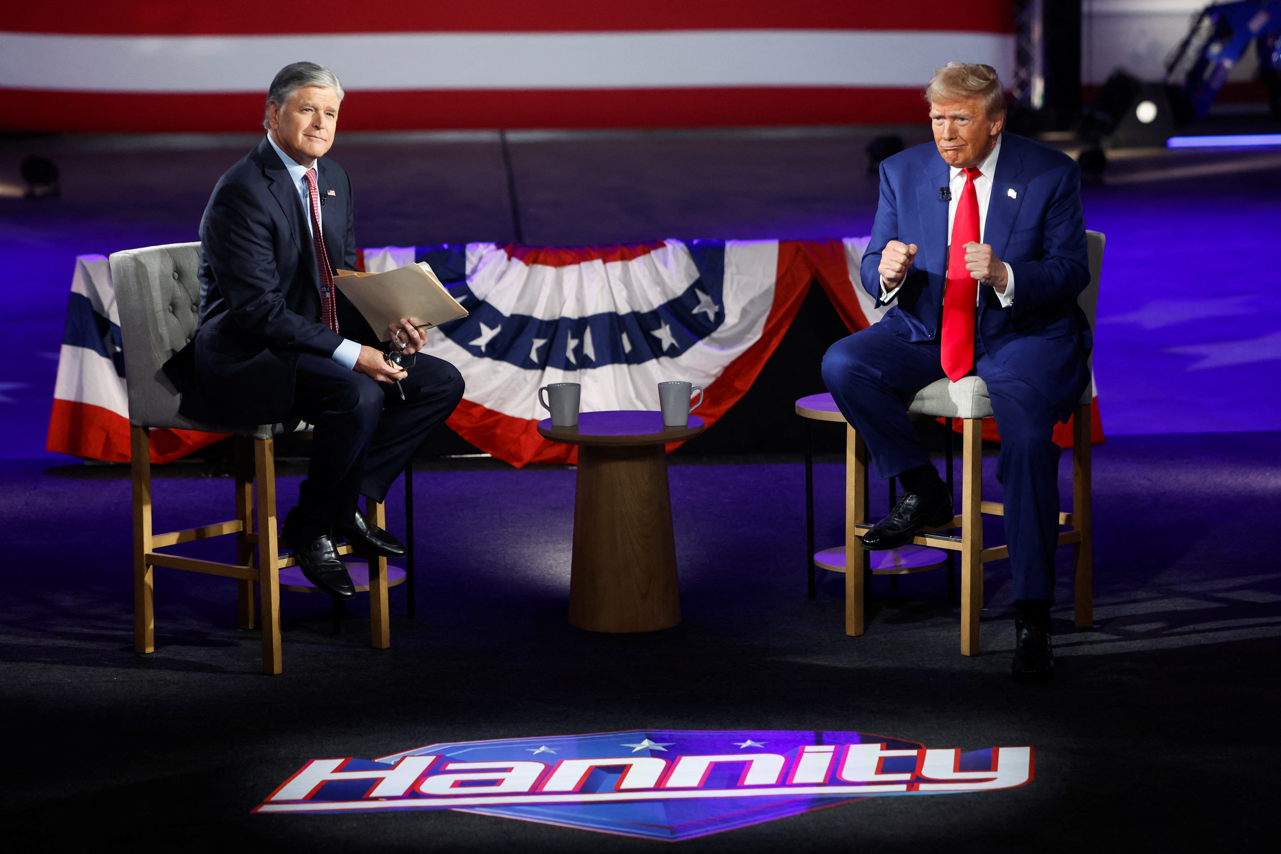 共和党总统候选人和前美国总统唐纳德·特朗普在2024年9月4日于美国宾夕法尼亚州哈里斯堡参加肖恩·汉尼提主持的福克斯新闻市政厅时做出手势。路透社/埃夫琳·霍克斯坦/档案照片华盛顿,1月21日(路透社) - 福克斯新闻主持人肖恩·汉尼提将于周三采访共和党美国总统唐纳德·特朗普,该网络的一位发言人周二表示。这将是特朗普自本周就职以来的第一次电视网络采访。采访将提前录制,并将在周三晚上9点(格林威治标准时间0200)播出。通过路透社政治美国通讯获取每周关于美国政治的新闻和分析,以及这些政治对世界的影响。注册这里。