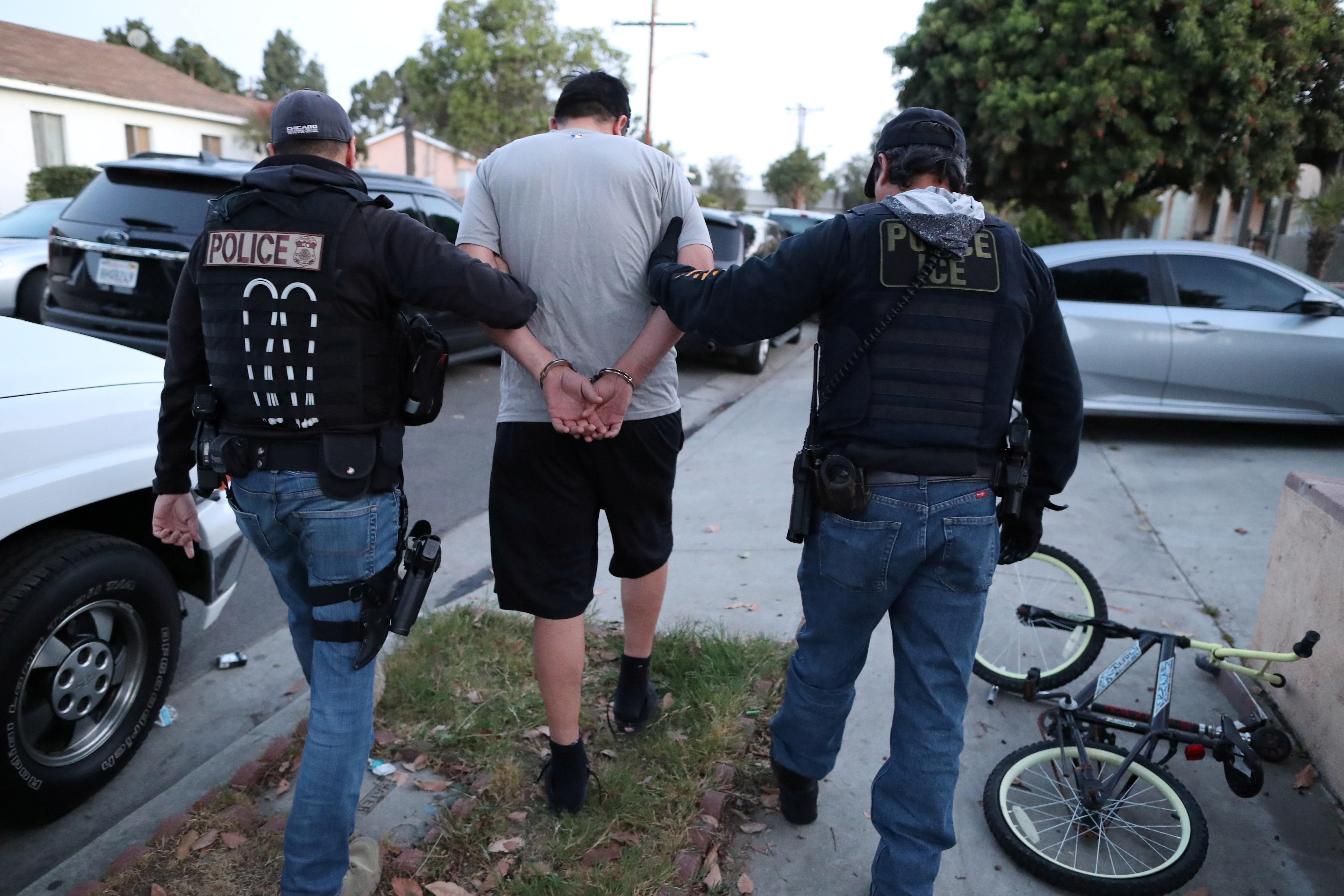 移民和海关执法局官员于2020年3月1日在美国加利福尼亚州帕拉蒙特的一处住宅逮捕了一名墨西哥国籍人士。路透社/露西·尼科尔森/档案照片“罪犯将不再能够躲藏在美国的学校和教堂中以避免被捕,”国土安全部在一份声明中表示。