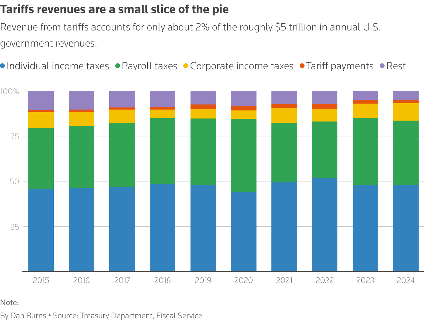 近年来,关税仅占美国年收入的约2%。