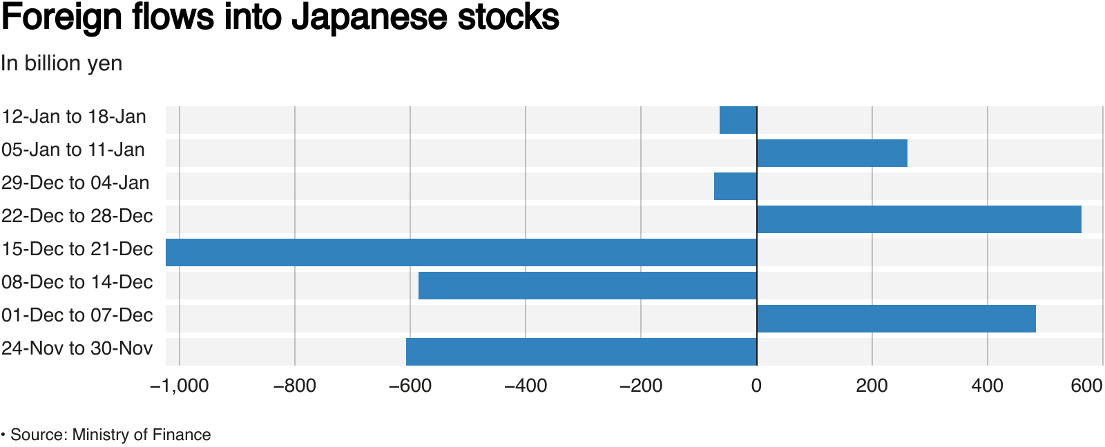 分析师指出,对外国股票的投资也受到新日本个人储蓄账户(NISA)计划的资金流入增加的推动,这是一项免税投资计划,他们预计这种投资将持续到3月。