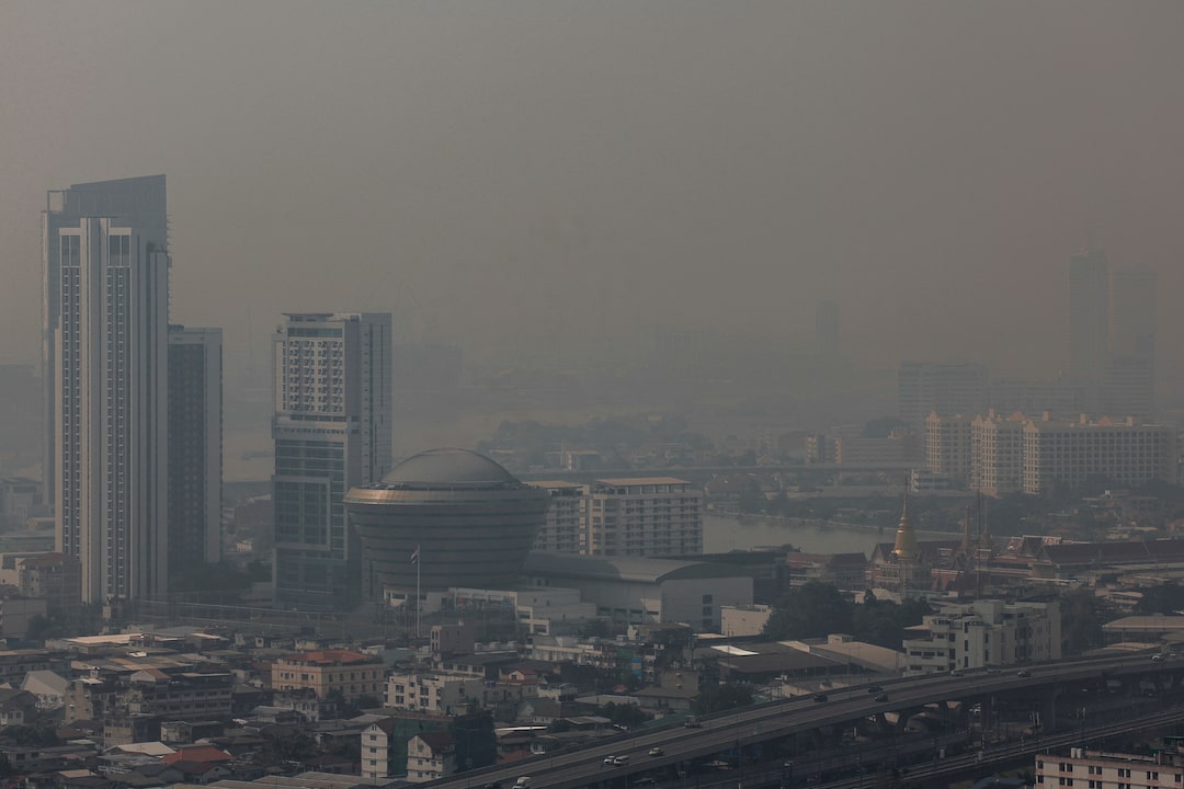 在泰国首都,浓厚的雾霾覆盖了城市的天际线。工人们,尤其是那些大部分时间在户外工作的人,正在遭受痛苦。