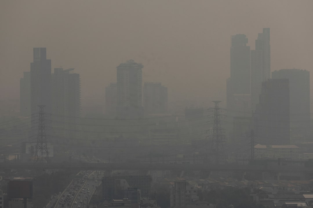 在泰国首都,浓厚的雾霾覆盖了城市的天际线。工人们,尤其是那些大部分时间在户外工作的人,正在遭受痛苦。