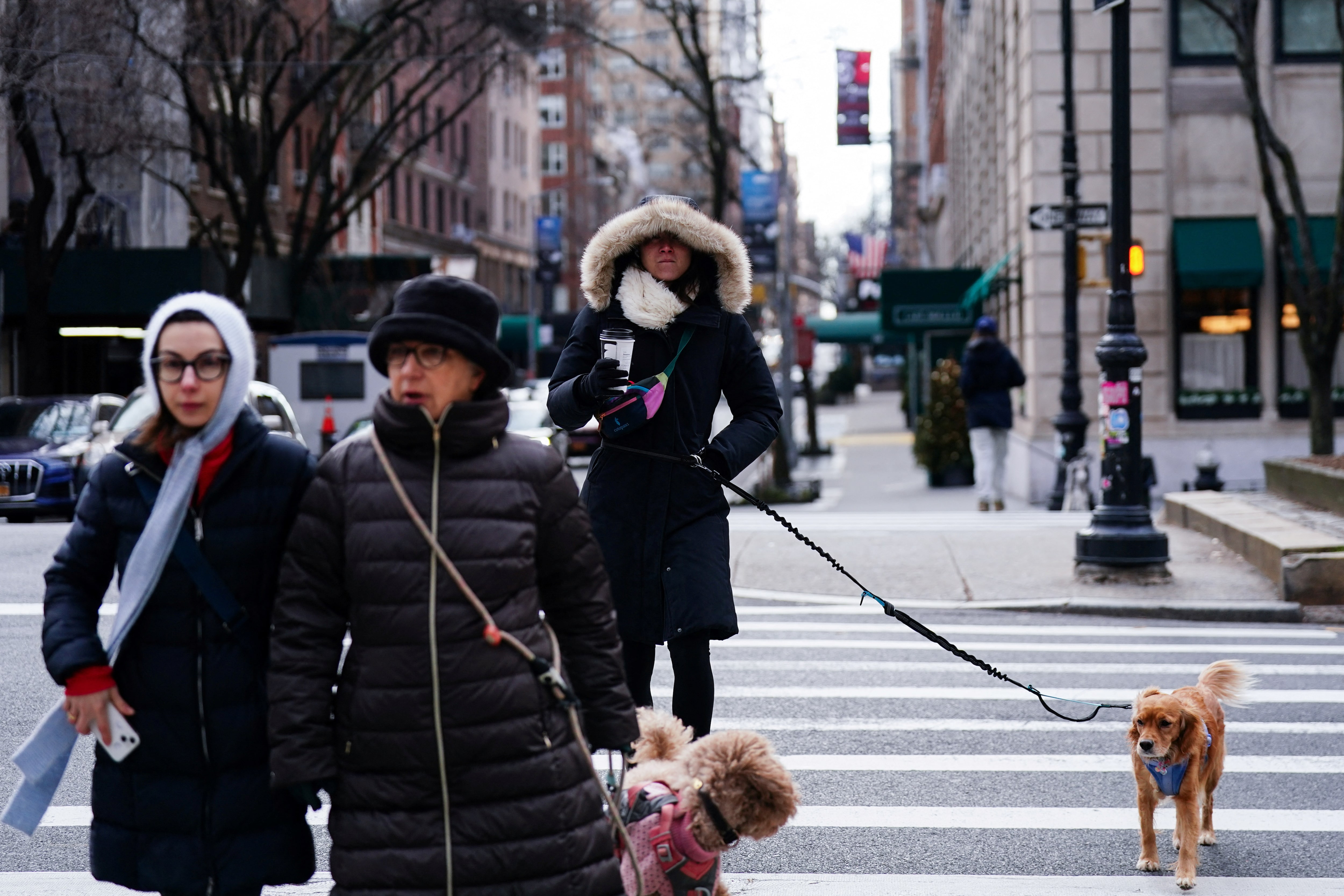 人们在寒冷的天气中在纽约市曼哈顿遛狗,2025年1月5日。路透社/亚当·格雷/档案照片纽约,1月24日(路透社)- 纽约市议会即将考虑一项立法,允许纽约人请带薪病假照顾他们的宠物和服务动物。