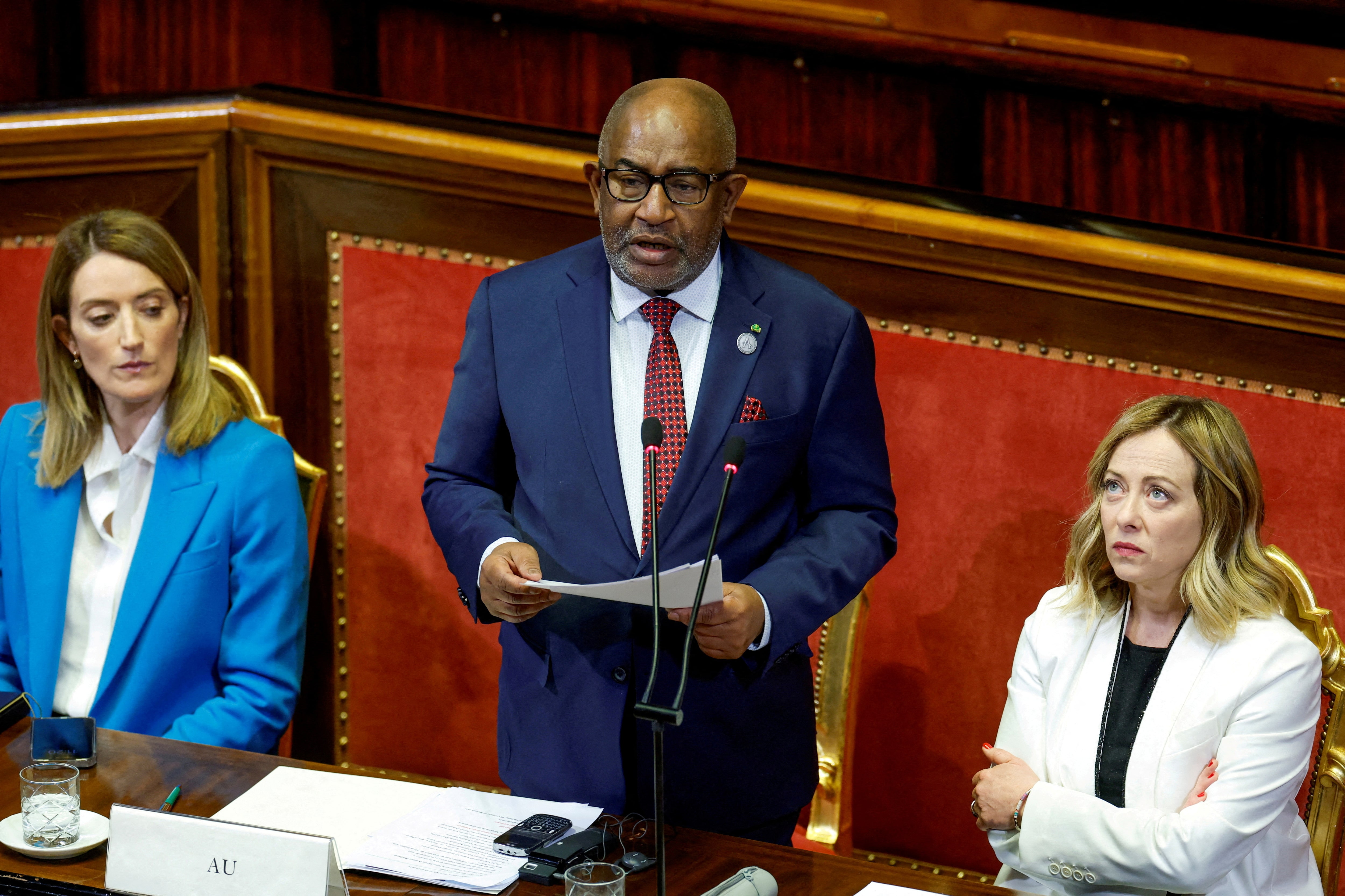 文件照片 科摩罗总统阿扎利·阿苏马尼在2024年1月29日意大利罗马举行的意大利-非洲峰会上与意大利总理乔治亚·梅洛尼和欧洲议会议长罗伯塔·梅佐拉一起发言。路透社/雷莫·卡西利/文件照片莫罗尼,1月25日(路透社) - 科摩罗总统阿扎利·阿苏马尼自1999年通过政变上台以来,自2002年以来在印度洋群岛国家赢得了四次选举,他否认他打算将权力移交给他的儿子。
