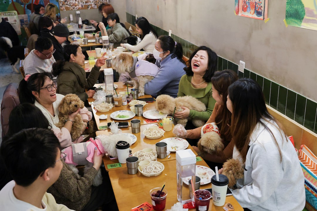 第1项,共5项 狗主人在2025年1月25日中国上海的孔山云南小馆举行的狗晚宴上喂食他们的狗,以迎接农历新年。路透社/高中村