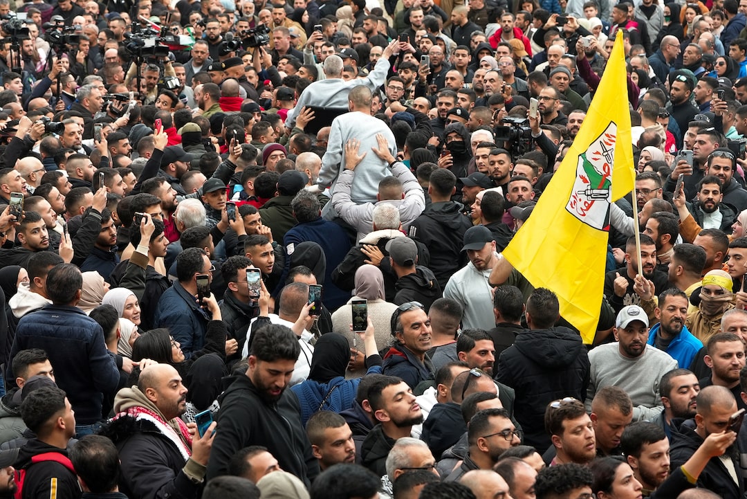 一些人挥舞着巴勒斯坦国旗或包括哈马斯在内的巴勒斯坦派别的旗帜,该组织统治着加沙,其盟友伊朗支持的伊斯兰圣战组织,以及巴勒斯坦总统马哈茂德·阿巴斯的法塔赫运动。在加沙南部的欧洲医院,16名获释的被拘留者抵达进行医疗检查,成千上万的人涌入欢迎他们,高喊“真主至大”和“向卡萨姆旅(哈马斯武装派别)致敬”。