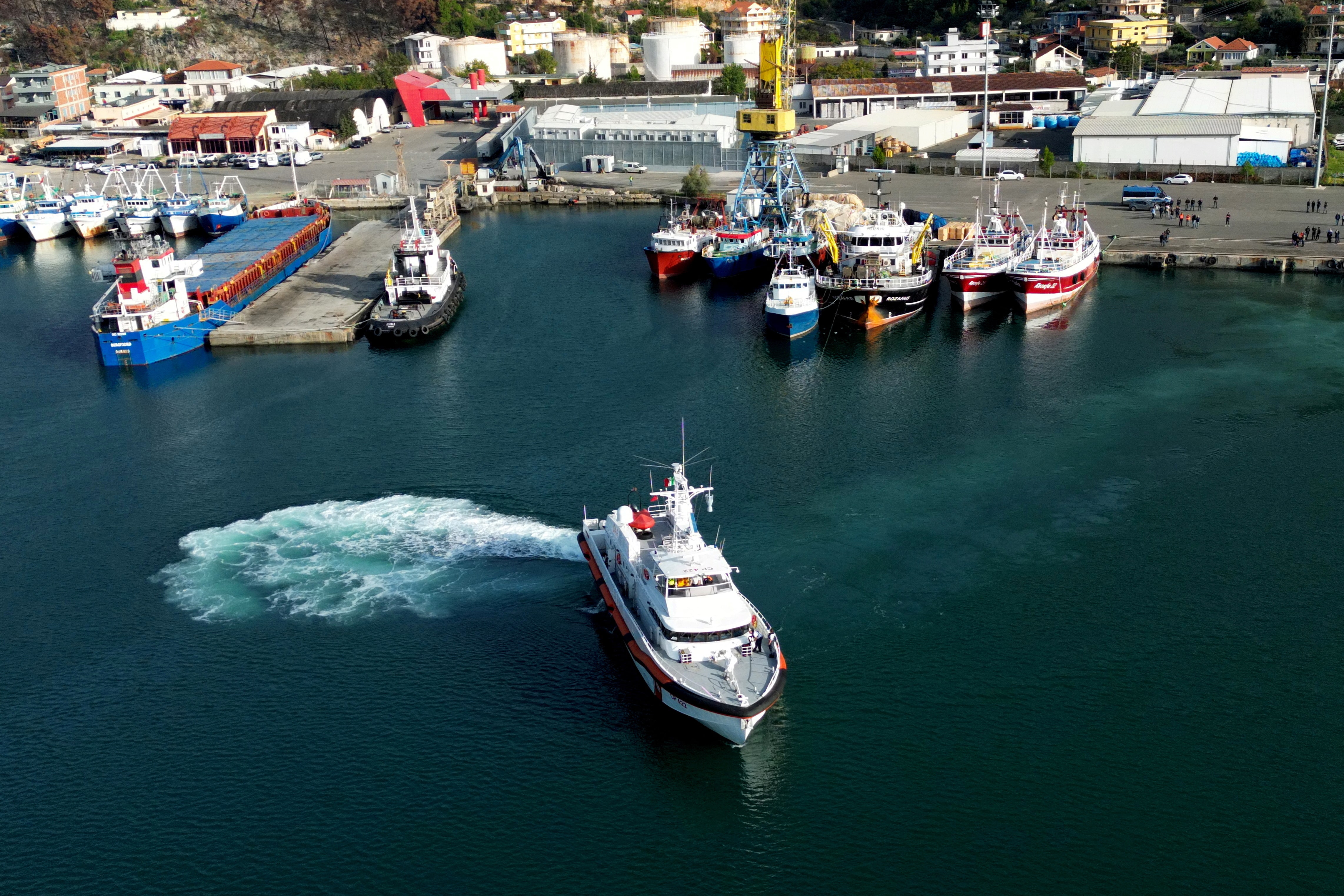无人机视角显示一艘意大利海岸警卫队船只正驶向意大利,船上载有在海上被拦截并随后在阿尔巴尼亚的接待设施中被拘留的移民,此前罗马的一家法院推翻了他们的拘留令,地点在阿尔巴尼亚的申金,2024年10月19日。路透社/弗洛里昂·戈加/档案照片罗马,1月26日(路透社) - 意大利海军周日将49名在国际水域被救起的移民送往阿尔巴尼亚的拘留设施,内政部表示,此举恢复了一个因法律争议而停滞的计划,以遏制海上抵达。