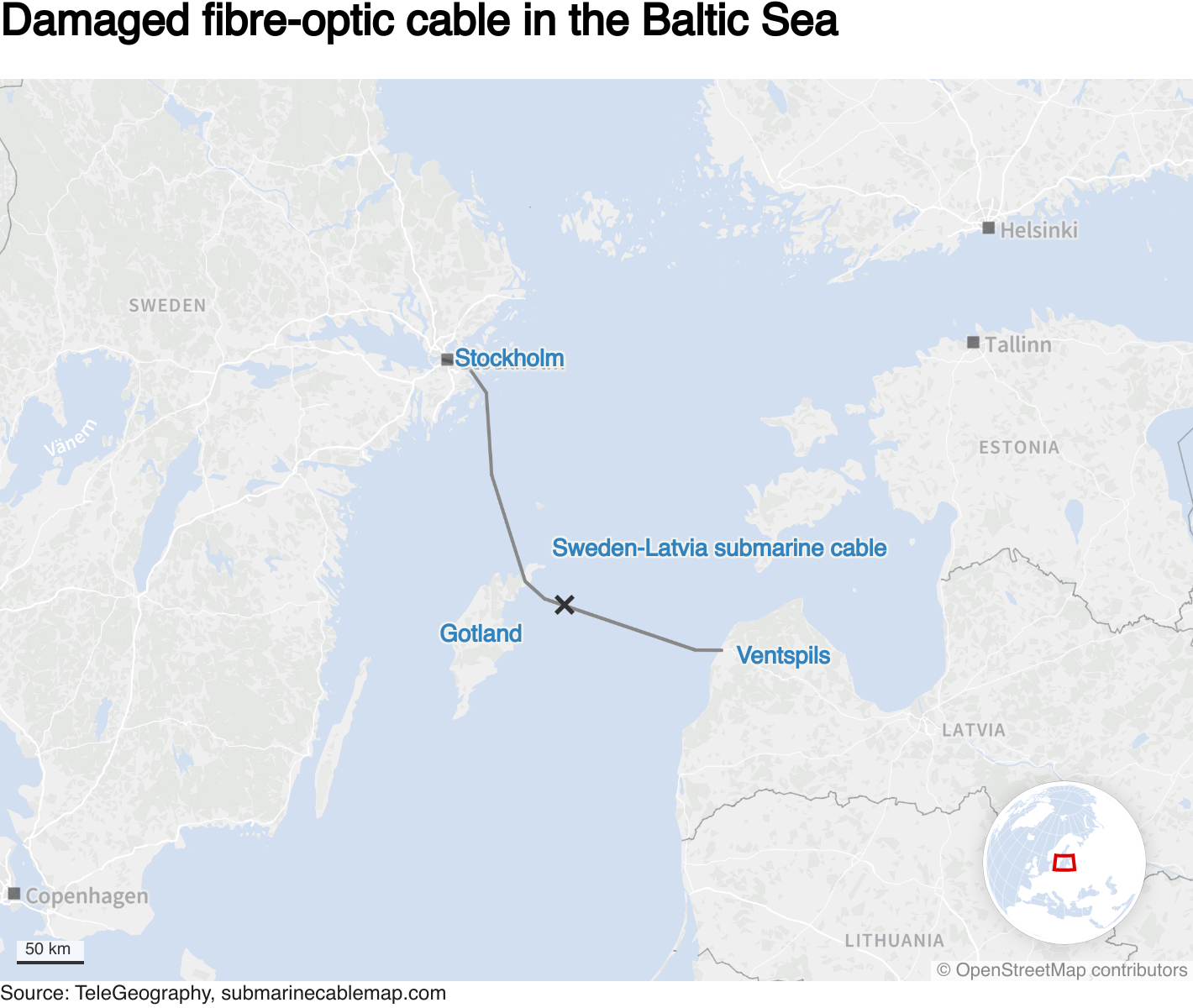 拉脱维亚与瑞典之间的海底电缆在瑞典的专属经济区内于周日早些时候受损,可能是由于外部影响,拉脱维亚表示。这促使北约向该地区部署巡逻船,并引发瑞典当局的破坏调查。一名瑞典检察官下令在调查过程中扣押一艘船。