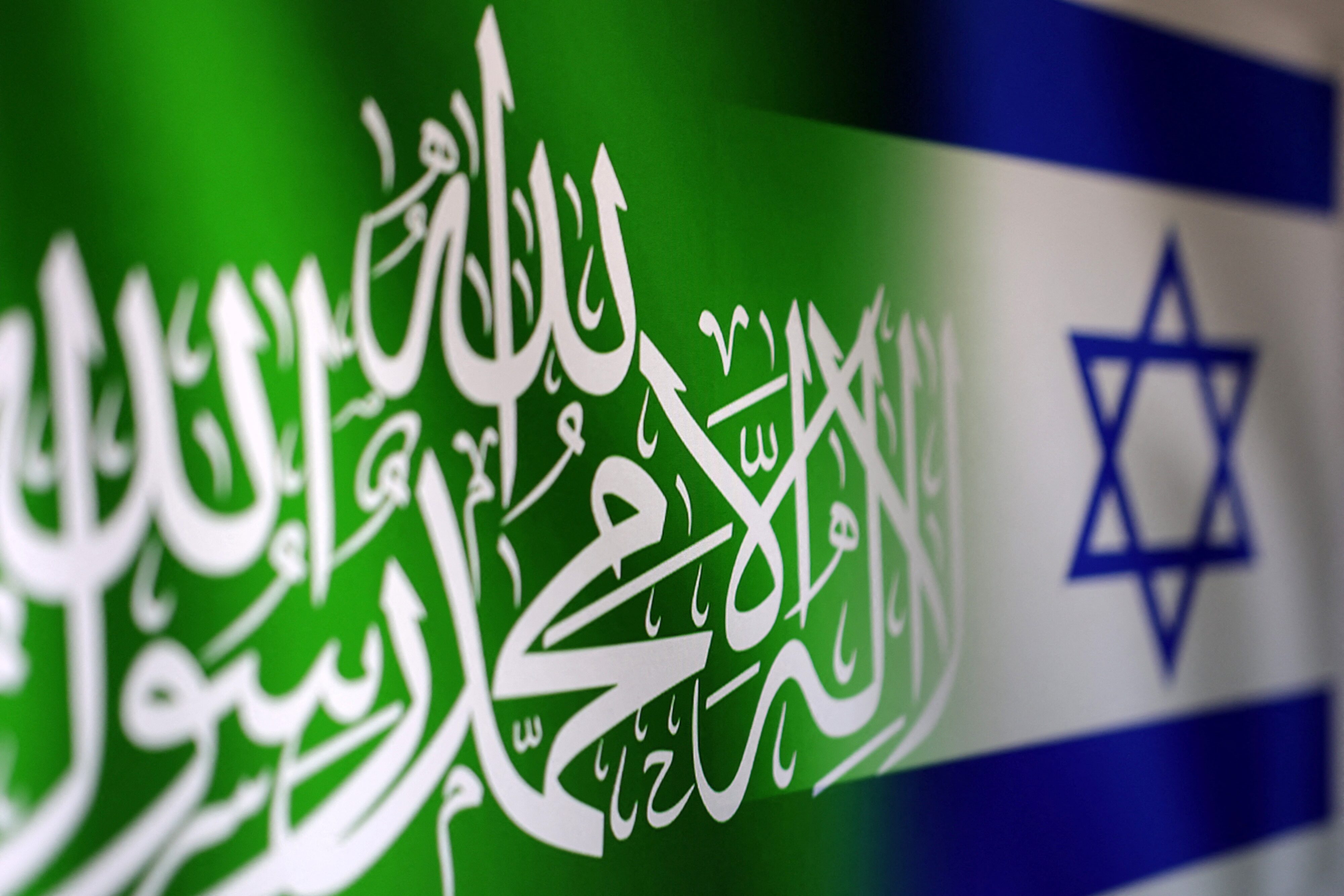 以色列国旗和哈马斯旗帜的示意图,来自路透社档案。加沙 1月27日(路透社) - 一名巴勒斯坦伊斯兰抵抗运动(哈马斯)领导人今天星期一对路透社表示,该组织已向中介提供了一份25名幸存人质的名单,这些人质是计划在停火协议的第一阶段释放的33人中的一部分。