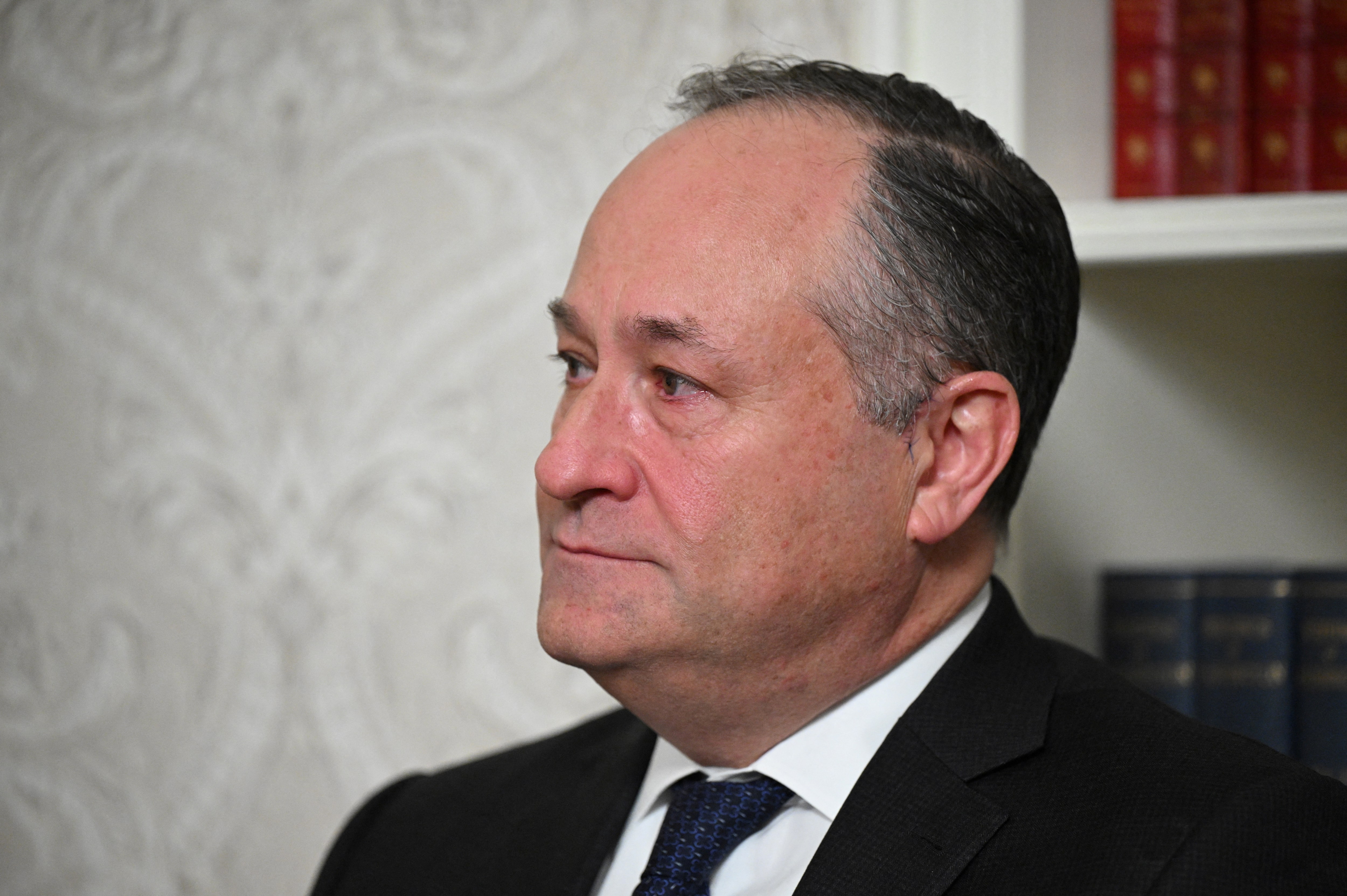 美国第二位男士道格·埃莫夫在2025年1月15日于华盛顿特区白宫椭圆形办公室向国家发表告别演讲时,倾听美国总统乔·拜登(画外)讲话。 曼德尔·甘/池 via 路透社/档案照片1月27日(路透社) - 前美国副总统卡马拉·哈里斯的丈夫道格·埃莫夫在妻子未能成功竞选白宫后,重返私人法律事务,加入企业律师事务所威尔基·法尔和加拉赫。