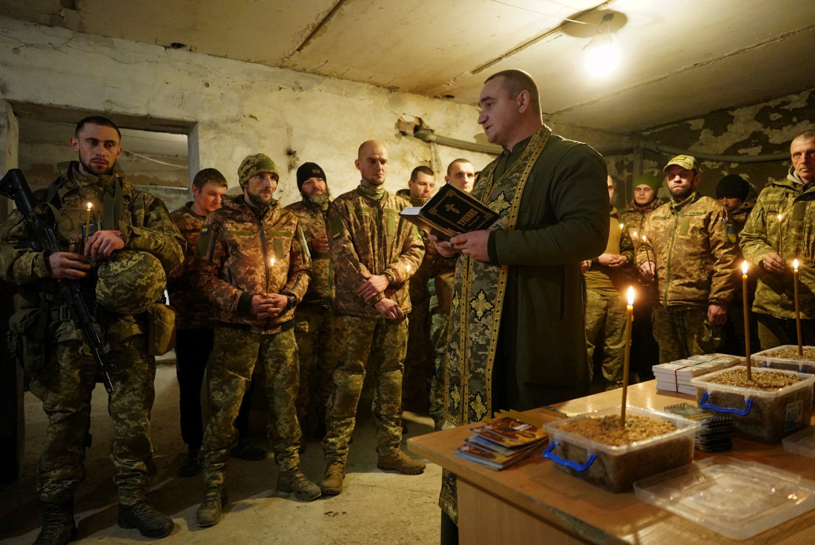一名军事东正教牧师在乌克兰武装部队第72独立机械化旅的军人中进行圣诞夜弥撒,地点位于顿涅茨克地区的前线阵地,正值俄罗斯对乌克兰的攻击,时间为2024年12月24日。Valentyn Kuzan/第72独立机械化旅新闻服务…阅读更多1月27日(路透社)- 乌克兰总统弗拉基米尔·泽连斯基周一表示,近三年的战争的严酷性不允许动员规则发生变化,因为如果士兵们大规模回家,俄罗斯总统弗拉基米尔·普京“会杀死我们所有人”。泽连斯基告诉意大利记者切西莉亚·萨拉,她本月在伊朗被拘留21天后获释,战争对乌克兰人及其家庭的影响凸显了迅速结束冲突的必要性。