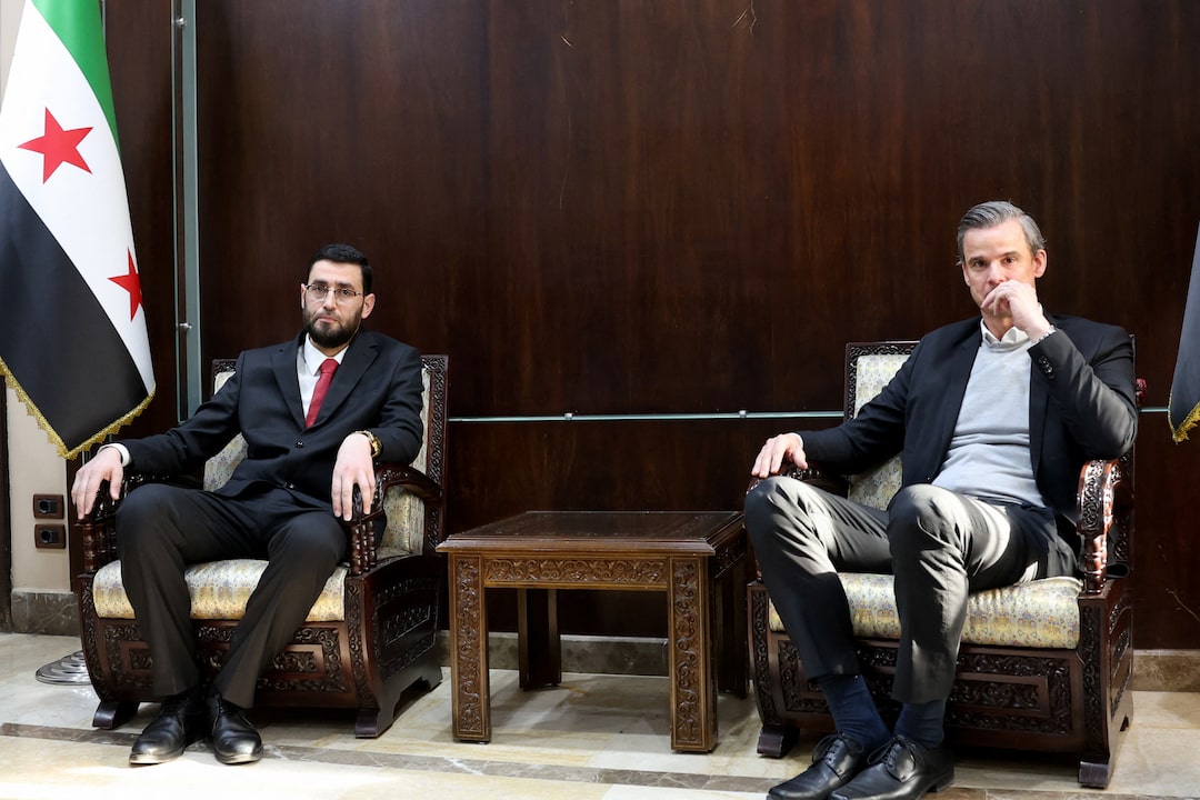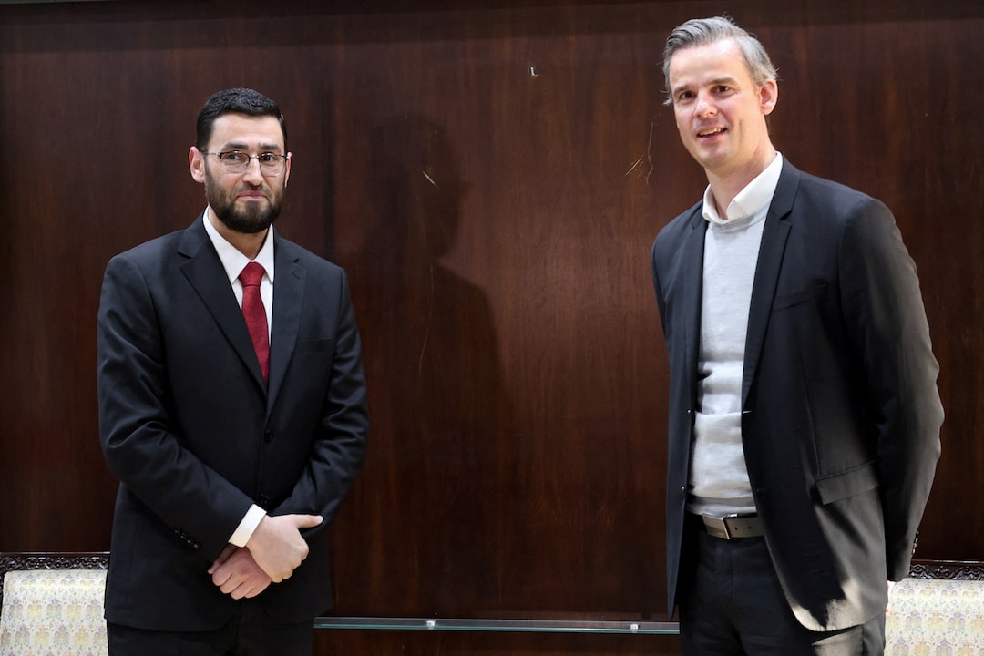 叙利亚财政部长穆罕默德·阿巴兹德于2025年1月29日在叙利亚大马士革会见德国在叙临时代表比约恩·格尔曼。路透社/雅曼·阿尔·沙尔