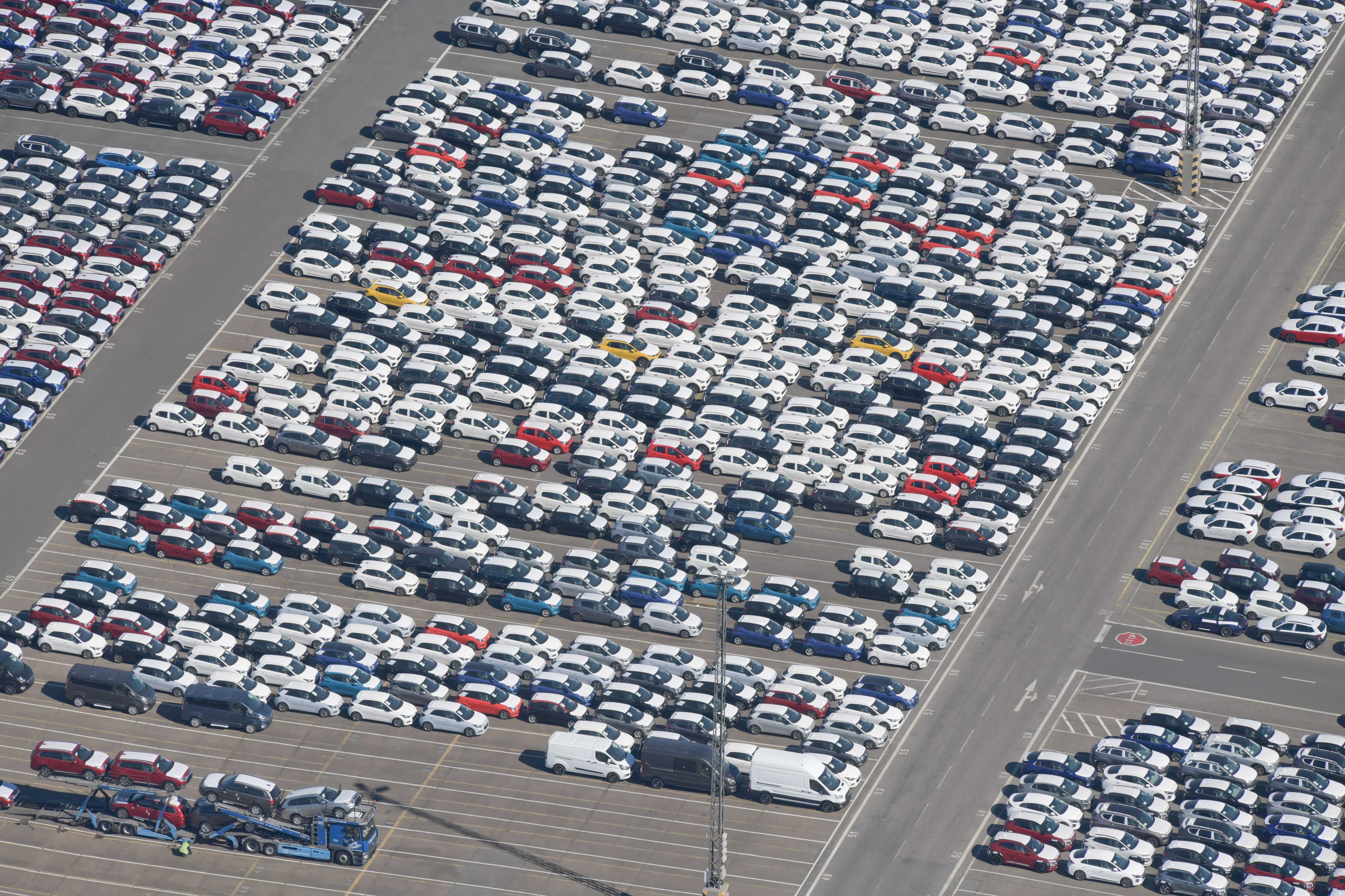 档案:待出口的汽车在德国不来梅港等待装载,2020年4月24日。路透社/法比安·比默- 作者:克里斯蒂安·克雷默 -