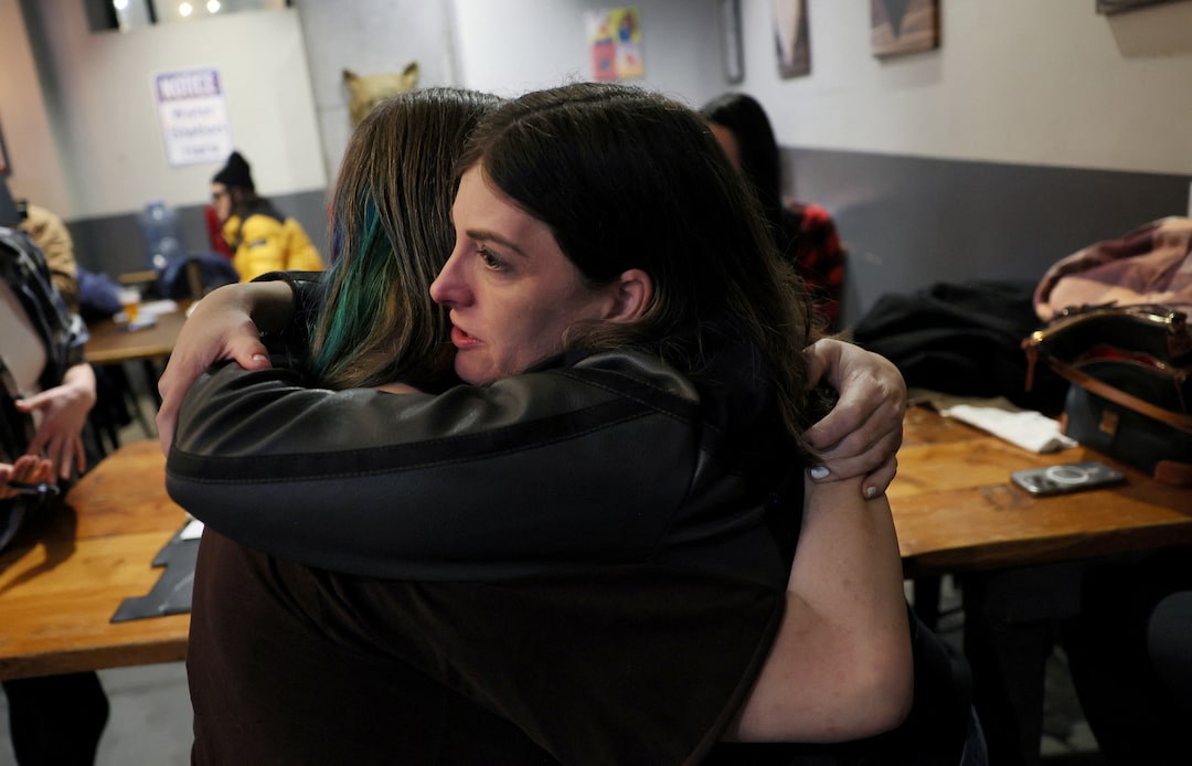 第1项,共8项 安吉拉·特罗斯卡,海岸警卫队,拥抱海军的维维安·贾奎斯,与空军的埃琳·克里泽克聊天,同时美国海军的指挥官艾米莉·希林和美国海军陆战队退休的维护与生产控制主任莎拉·克里姆在华盛顿的红熊酿酒公司与SPARTA成员会面,SPARTA是一个为曾在军队服役或正在服役的跨性别者提供资源的非营利组织,时间为2025年1月19日。路透社/莉亚·米利斯