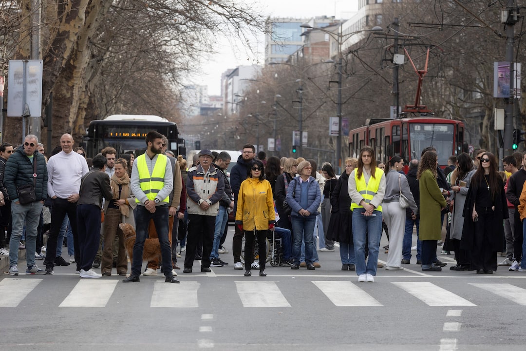 抗议活动于11月在诺维萨德开始,但已蔓延至首都贝尔格莱德,本周领导示威的学生封锁了一个主要交叉口。