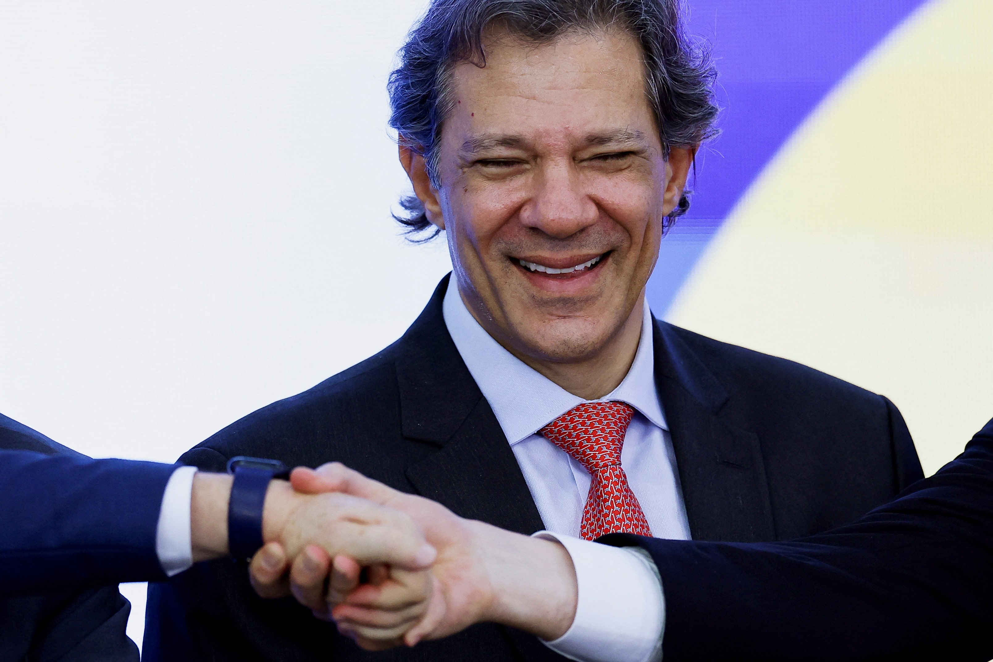 财政部长,费尔南多·哈达德,在普拉纳托宫 2025年1月16日 REUTERS/乌斯莱·马塞利诺巴西利亚,1月29日(路透社) - 政府将实施一种机制,以加强对私营部门工人的工资扣除信贷的优惠,财政部长费尔南多·哈达德在周三表示,并提到将创建一个平台来比较银行提供的利率。