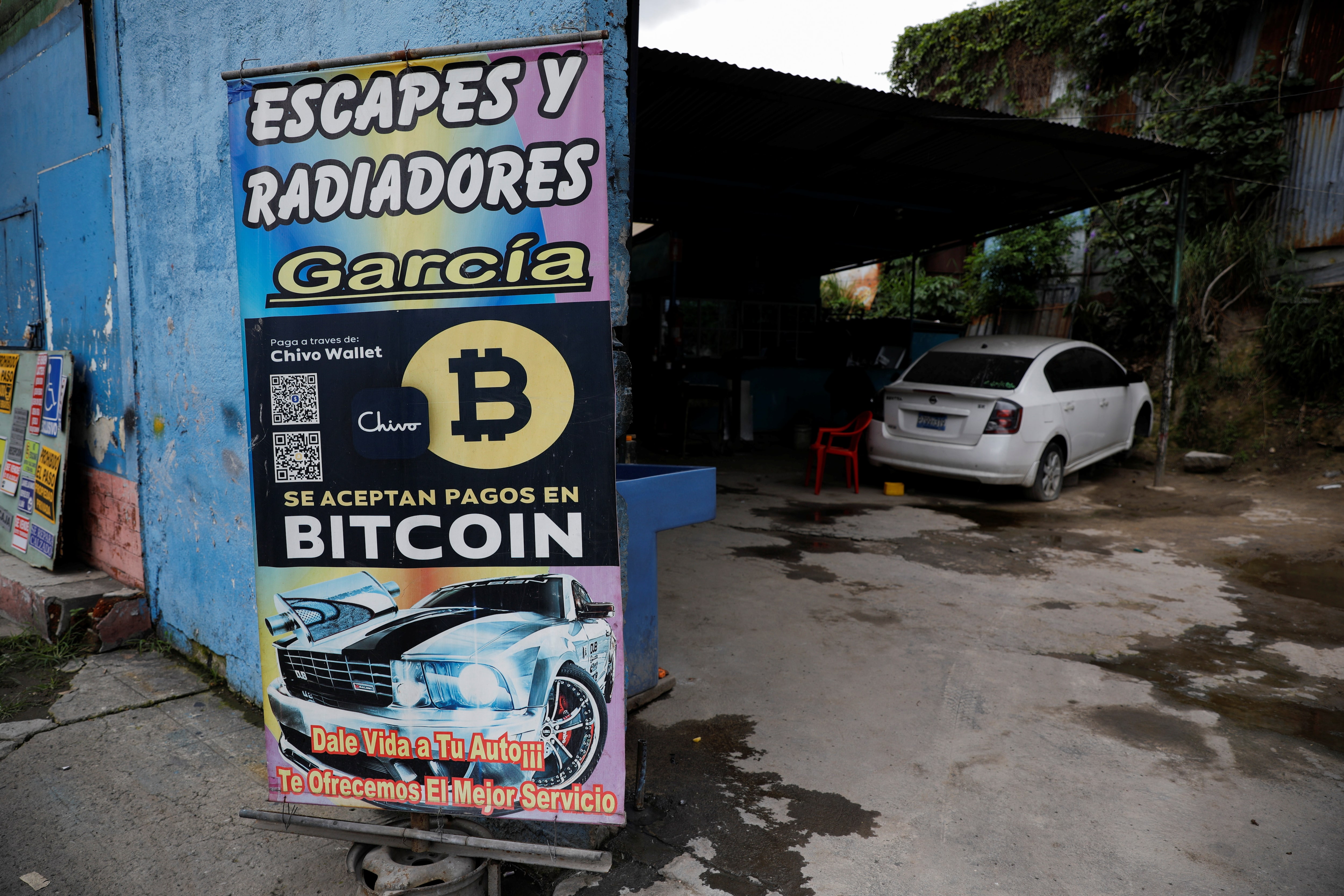 档案照片。比特币的标志展示在一个接受加密货币作为支付方式的汽车修理店外,地点在萨尔瓦多,萨尔瓦多。2022年7月13日。路透社/何塞·卡贝萨斯圣萨尔瓦多,1月29日(路透社) - 萨尔瓦多总统纳伊布·布克尔要求改革国家比特币法,官方立法者克里斯蒂安·格瓦拉在国会会议上表示。
