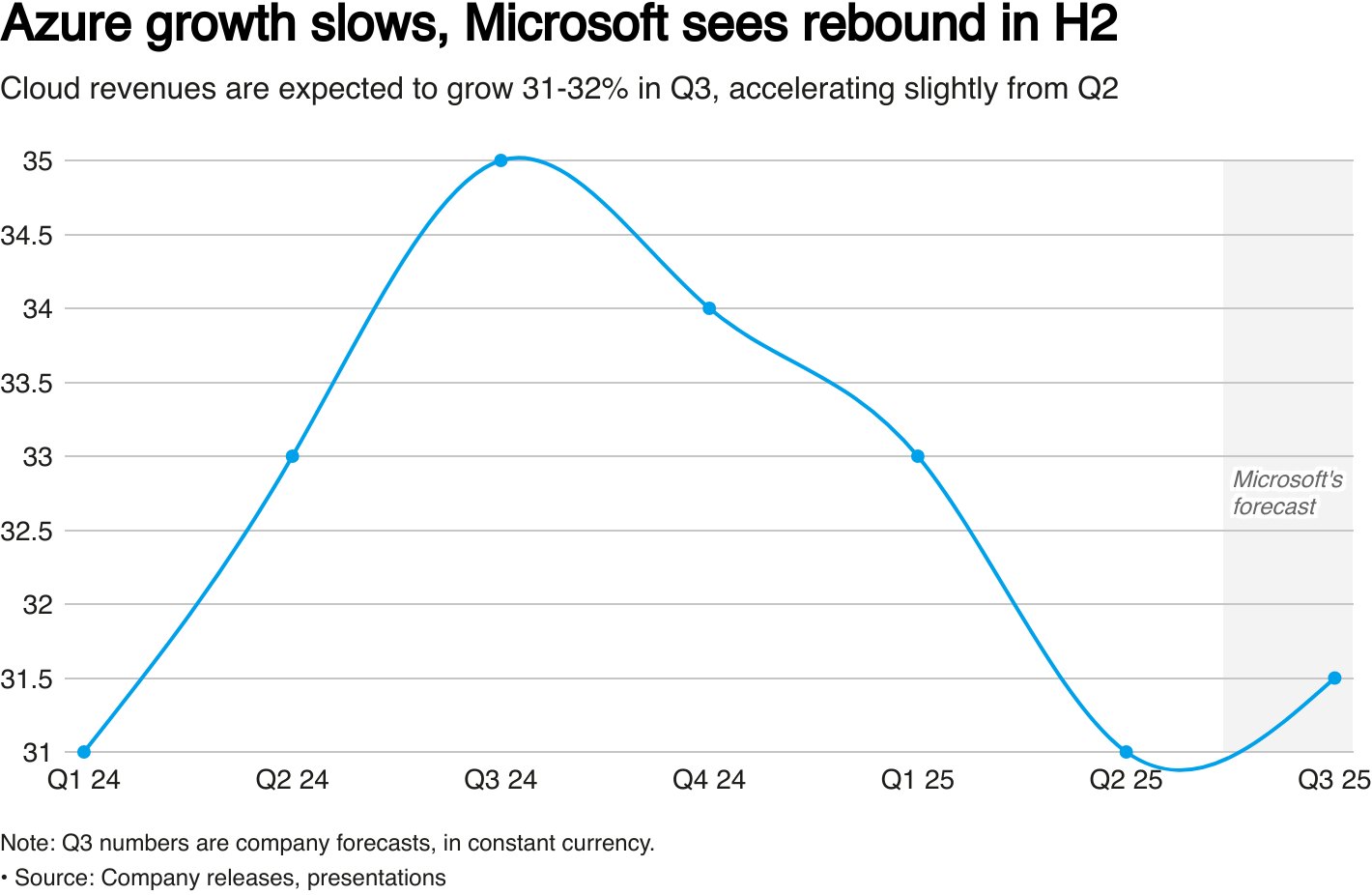 微软预测Azure收入增长将在第二季度放缓。