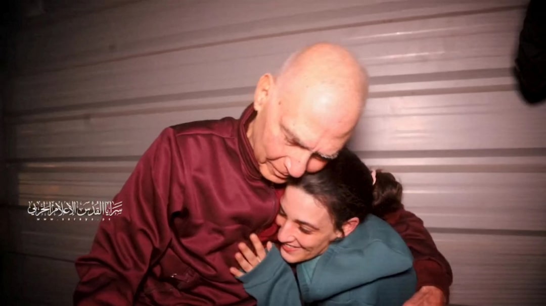 巴勒斯坦武装分子包围人质阿尔贝尔·耶胡德,自2023年10月7日致命袭击以来被拘留在加沙,今天他们将她交给国际红十字委员会(ICRC)成员,作为哈马斯与以色列之间停火和人质-囚犯交换协议的一部分,地点在汗…阅读更多“我们的女儿坚强、忠诚且勇敢,”她家人的声明说。“现在阿甘和我们的家庭可以开始康复过程,但直到所有人质回家,恢复才会完成。”