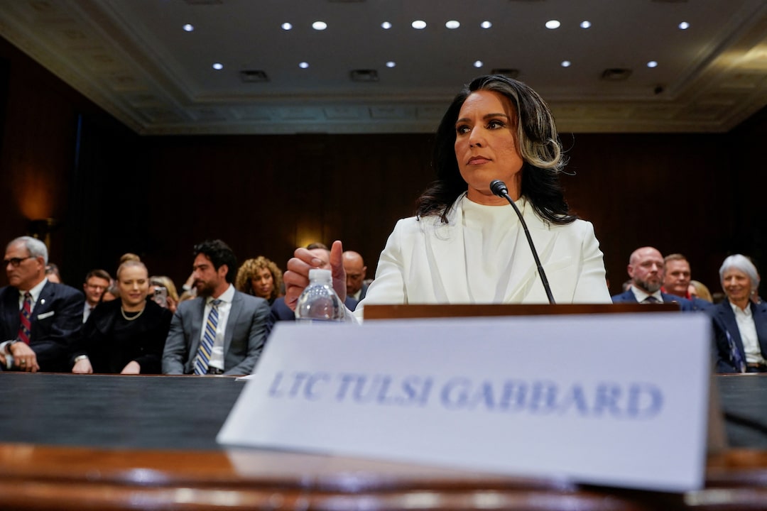 第1项,共7项 前代表图尔西·加巴德,美国总统唐纳德·特朗普提名的国家情报局局长候选人,在2025年1月30日于美国华盛顿国会山出席参议院情报委员会确认听证会作证。路透社/内森·霍华德