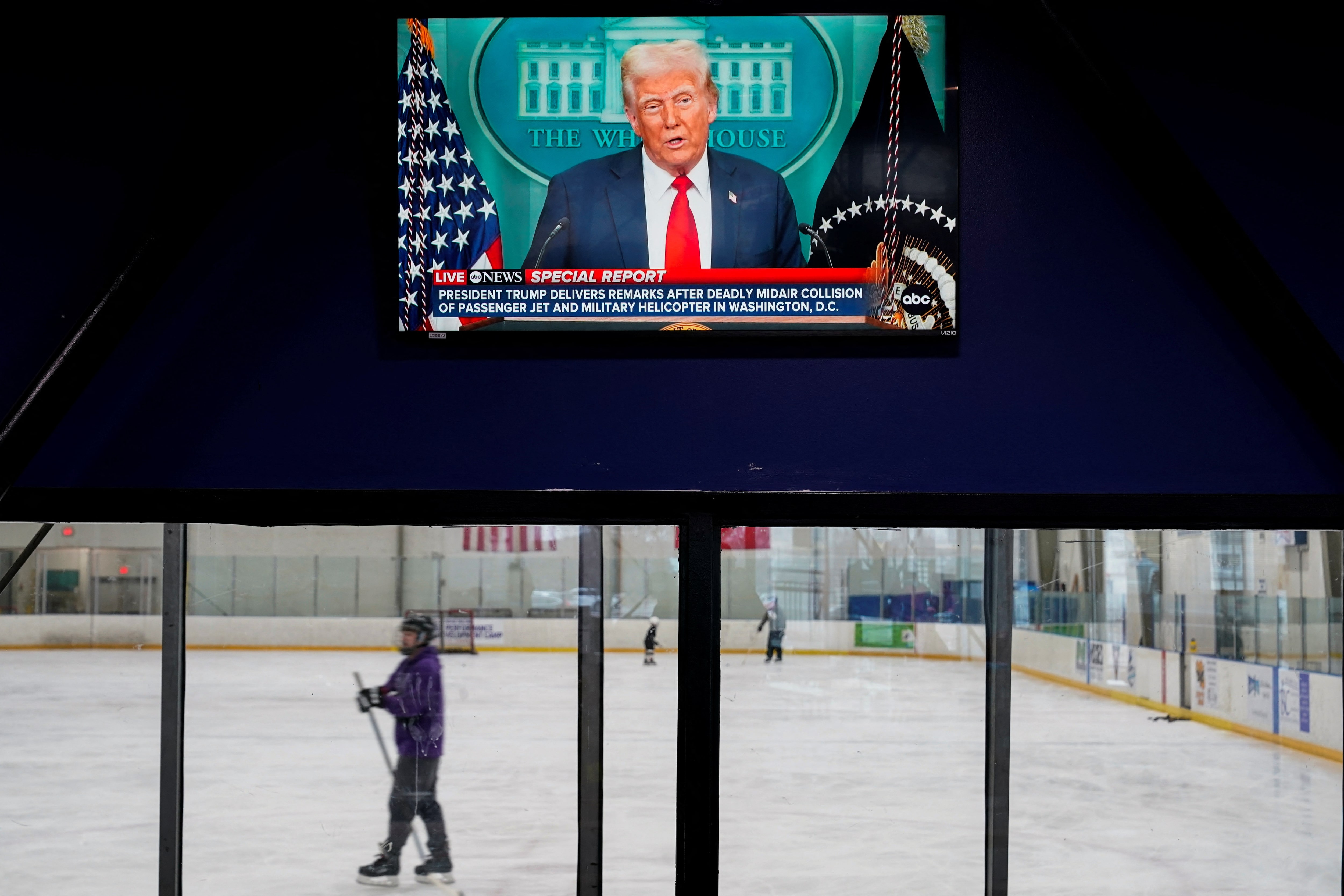 一台电视显示美国总统唐纳德·特朗普在华盛顿特区的威奇托冰中心发表关于致命空中碰撞的讲话,那里一些美国鹰航5342航班的空难受害者参加了美国花样滑冰高性能国家发展营,地点在美国堪萨斯州威奇托,…阅读更多华盛顿,1月30日(路透社)- 总统唐纳德·特朗普周四在没有证据的情况下暗示,华盛顿的致命空中碰撞是联邦航空管理局努力招聘更具多样性和公平性的员工的结果。特朗普在一次白宫新闻发布会上提出这一指控,目的是向美国人更新周三晚上发生的空难情况,事故中一架即将降落在里根国家机场的客机与一架正在训练飞行的军用直升机相撞。这一言论迅速遭到航空安全专家、残疾权利倡导者和民主党立法者的强烈批评。在客机上的64人和直升机上的三名士兵中没有幸存者。