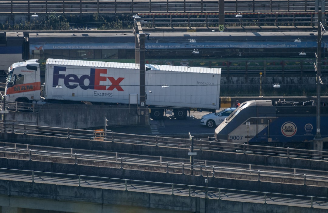 第1项,共3项 无人机视角显示货运卡车在英国阿什福德附近的塞文顿内陆边境设施处理货物,2024年4月30日。路透社/克里斯·J·拉特克利夫/档案照片