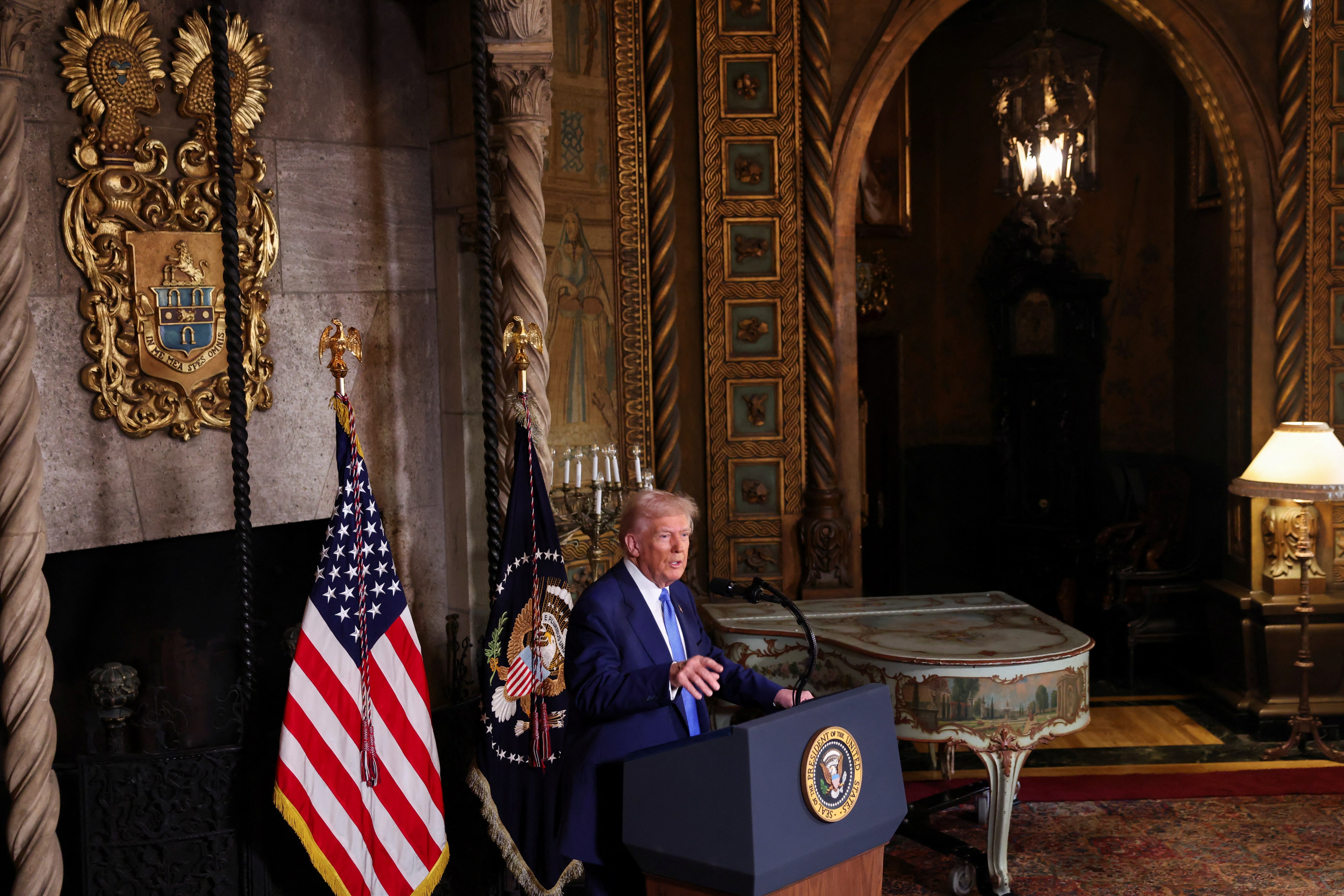 美国总统唐纳德·特朗普于2025年2月18日在佛罗里达州棕榈滩的马阿拉歌发表讲话。路透社/凯文·拉马奎/档案照片华盛顿,2月19日(路透社)- 《华盛顿邮报》周三报道,特朗普政府已停止对巴勒斯坦权力机构安全部队的所有资金支持,作为全球对外援助的冻结的一部分,引用了美国和巴勒斯坦官员的话。