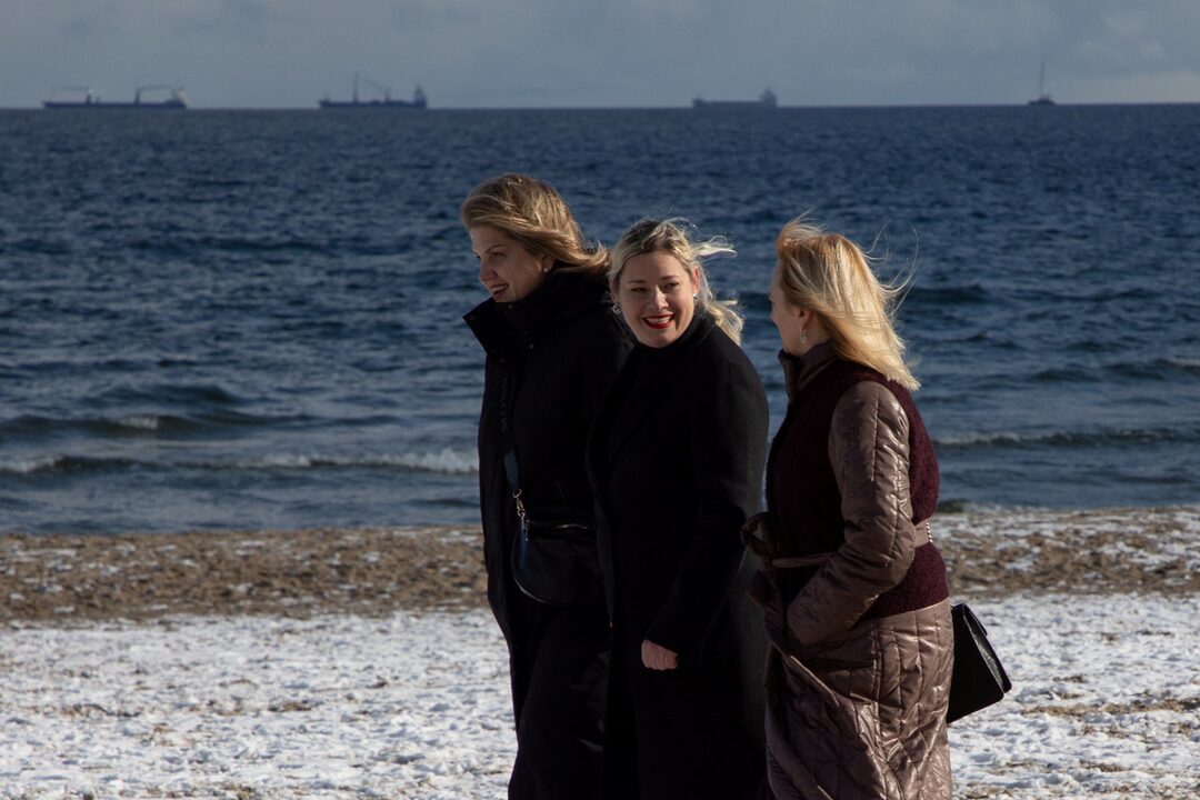 第1项,共7项 难民奥尔哈·什卡帕,45岁,奥克萨娜·萨普罗诺娃,41岁,和奥莱娜·马特维丘克,50岁,在2022年俄罗斯入侵后逃离乌克兰,在波兰索波特的一个雪覆盖的海滩上走动,准备接受路透社的采访,时间是2025年2月19日。路透社/彼得·帕夫洛夫斯基