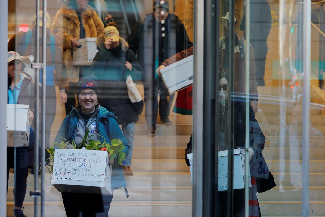 第1项,共4项 一名最近被解雇的美国国际开发署(USAID)工作人员在离开工作时作出反应,期间在美国华盛顿特区的USAID办公室外,由前USAID工作人员和支持者举行送别仪式,时间为2025年2月21日。 路透社/布莱恩·斯奈德