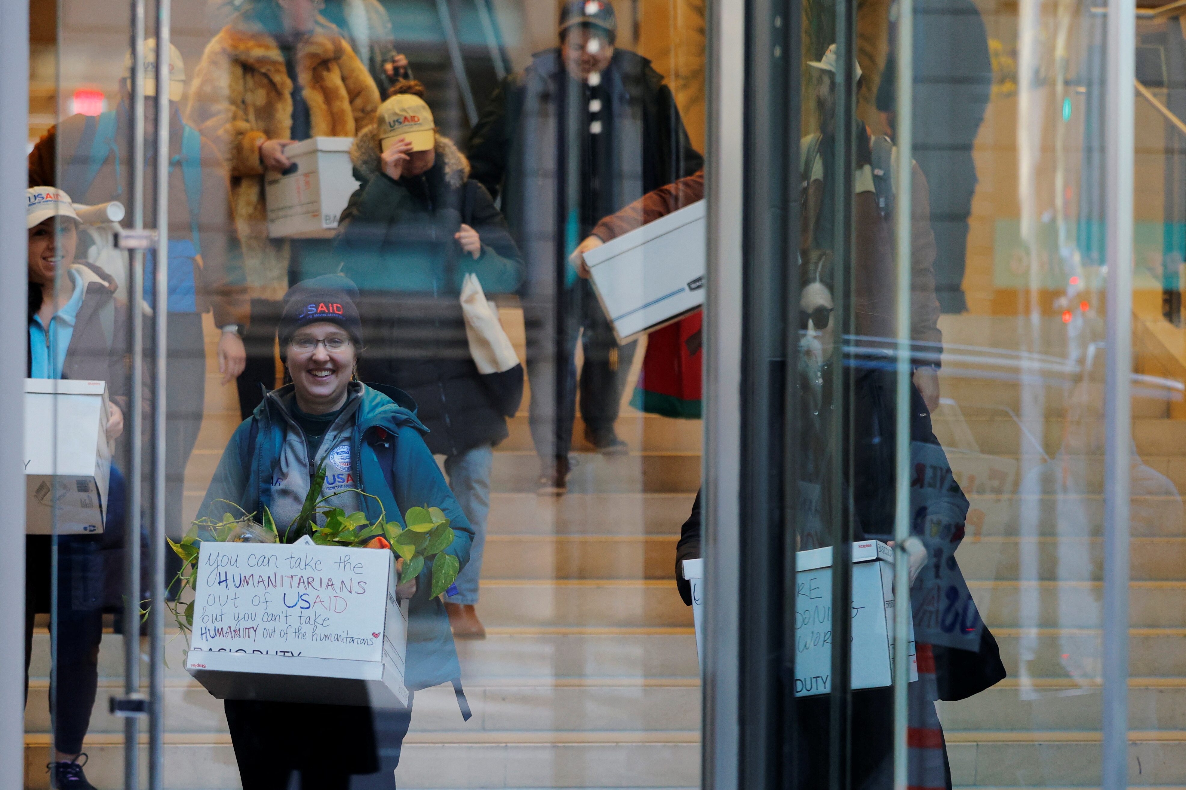 最近被解雇的美国国际开发署(USAID)员工离开华盛顿的办公室
