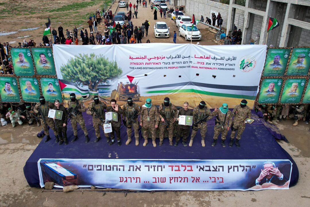 周六从加沙释放的六名人质是根据上个月开始的脆弱停火协议第一阶段计划释放的最后一批活着的以色列人质。