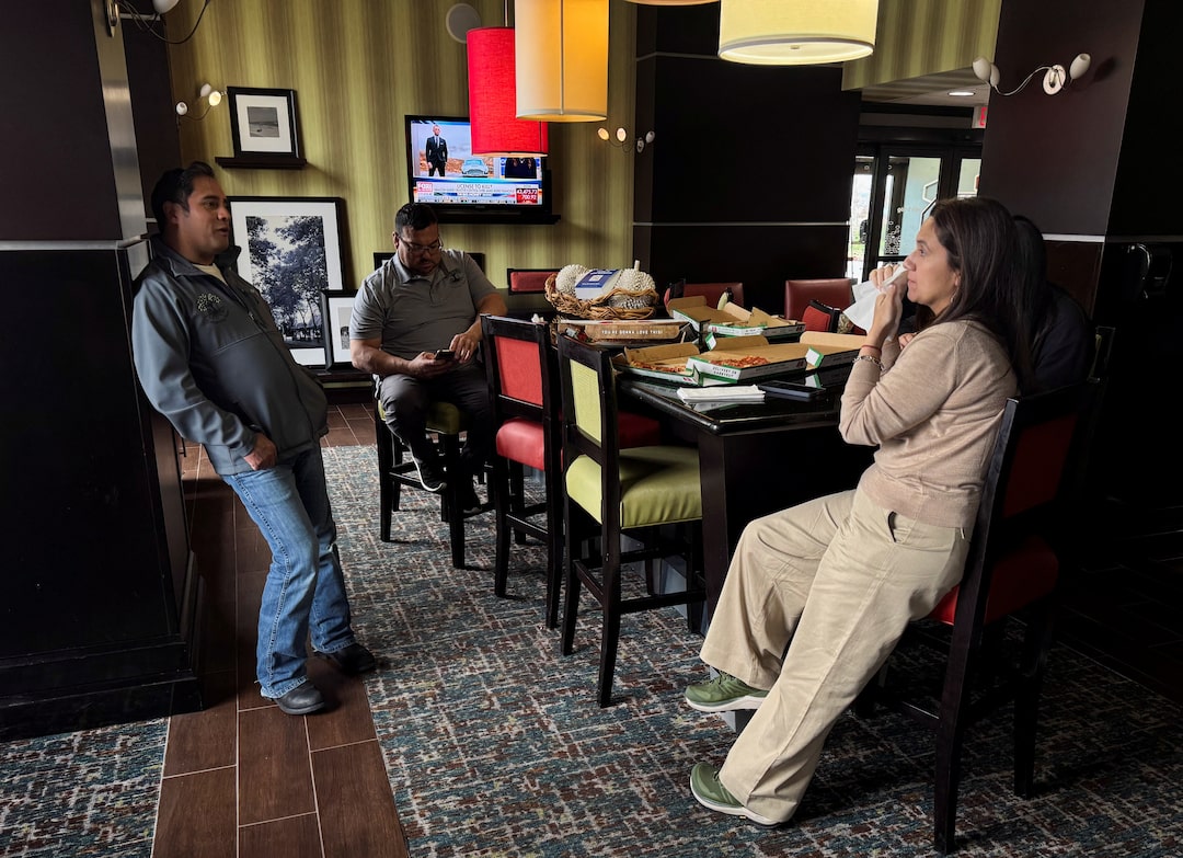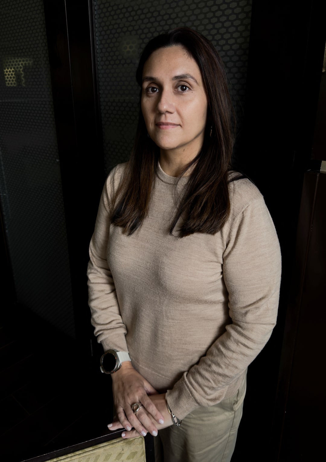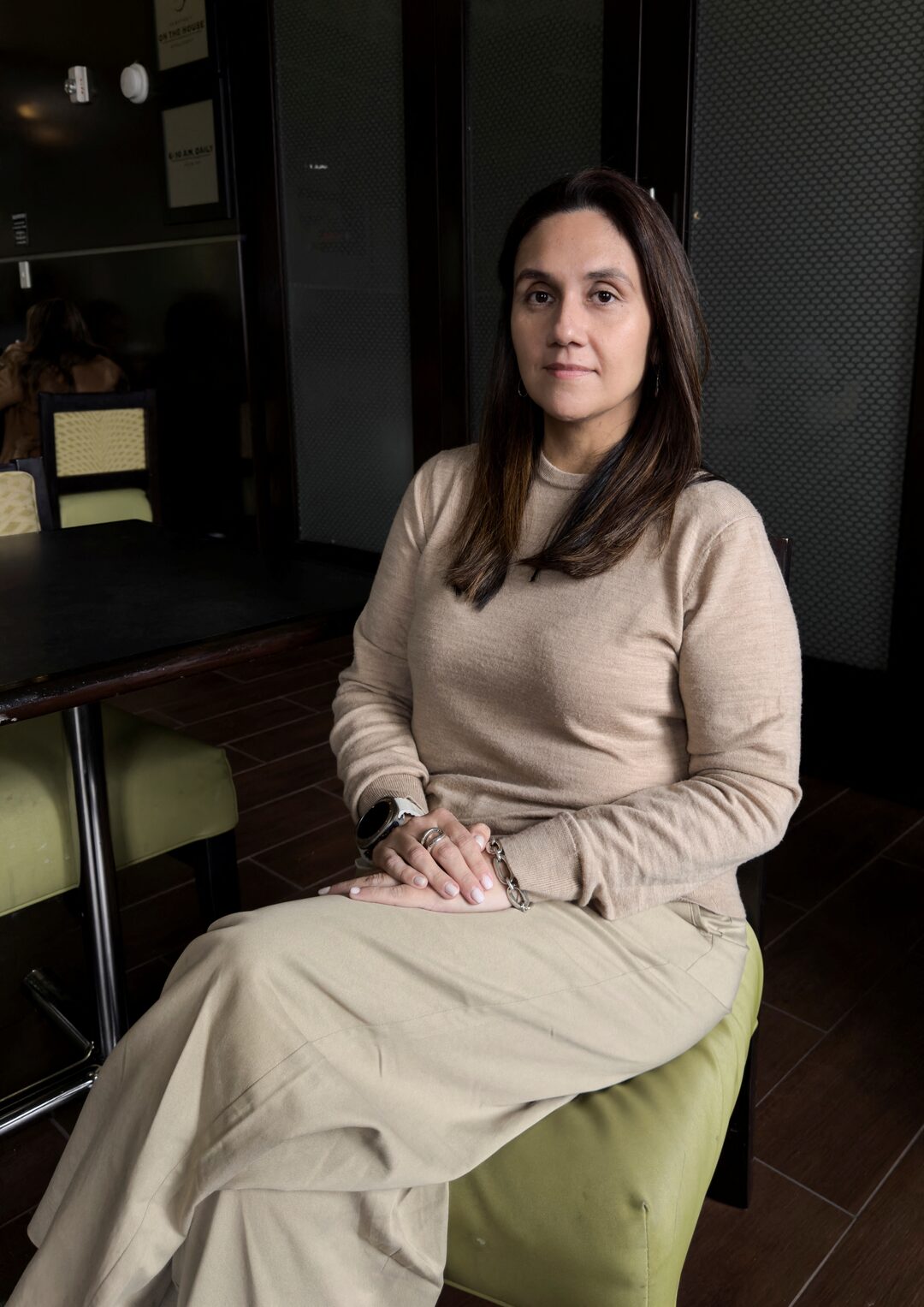 项目1/4 亚当丽·“阿达”·加西亚,一名40岁的女性,在智利的奥古斯托·皮诺切特独裁统治期间,三个月大时被一名美国女性非法收养,她在前往机场登机前查看手机,准备飞往智利与她的生物母亲和兄弟姐妹团聚,地点:美国德克萨斯州休斯顿,2025年2月21日。路透社/塞巴斯蒂安·罗坎迪奥