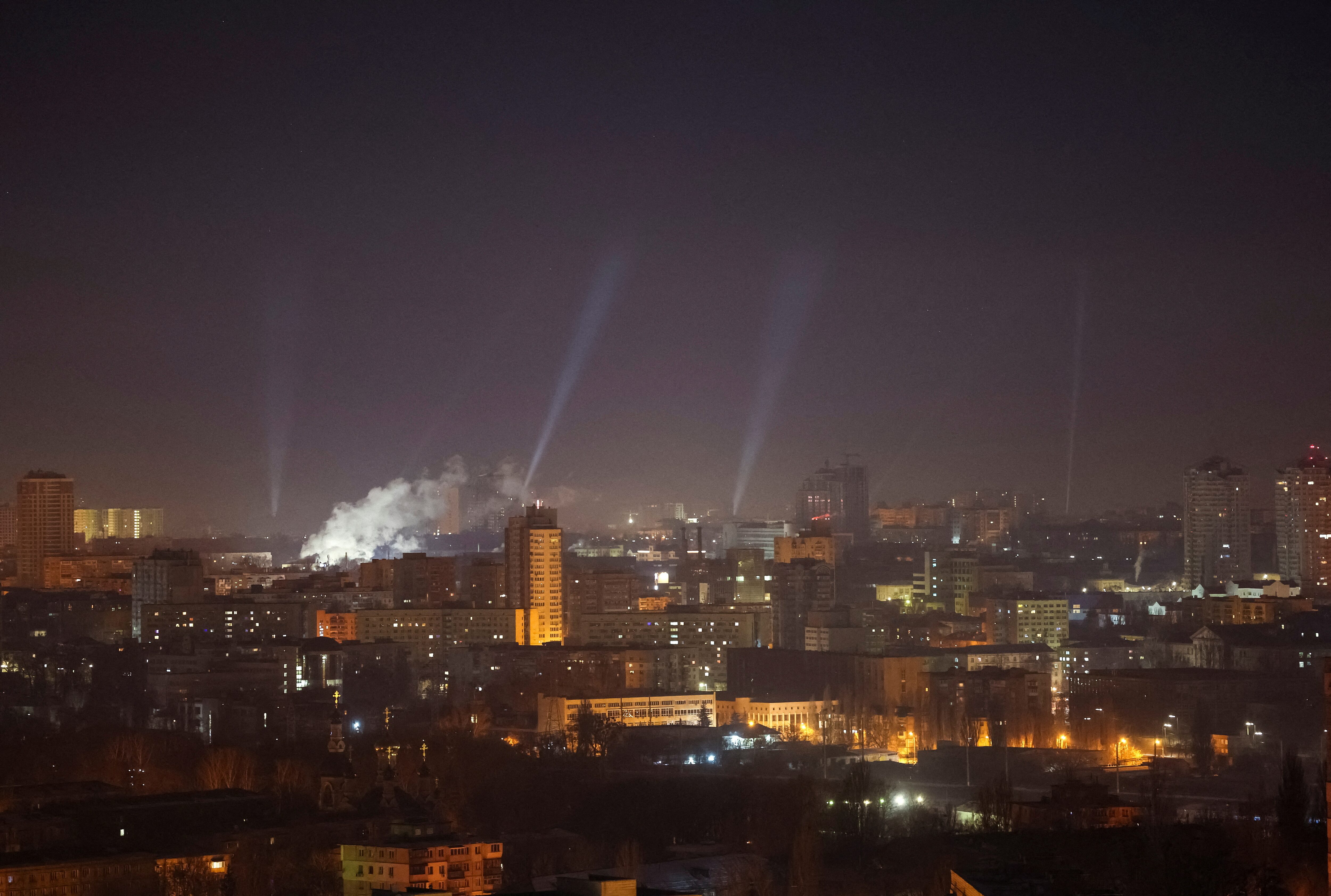 档案照片。乌克兰服务人员在城市上空寻找无人机时使用反射器,在俄罗斯对乌克兰的攻击背景下,在乌克兰基辅,2025年2月23日。路透社/格列布·加拉尼奇联合国,2月24日(路透社) - 美国正在敦促联合国大会支持其决议,以纪念周一俄罗斯入侵乌克兰三周年,反对任何修正案,并对乌克兰及其欧洲盟友起草的对立文本投反对票。