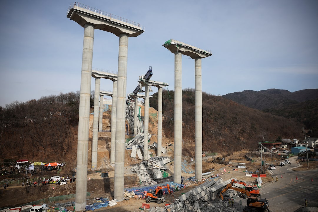 项目 1 共 3 项 救援人员参与在韩国天安的倒塌高速公路施工现场的救援行动,2025年2月25日。 路透社/金洪志