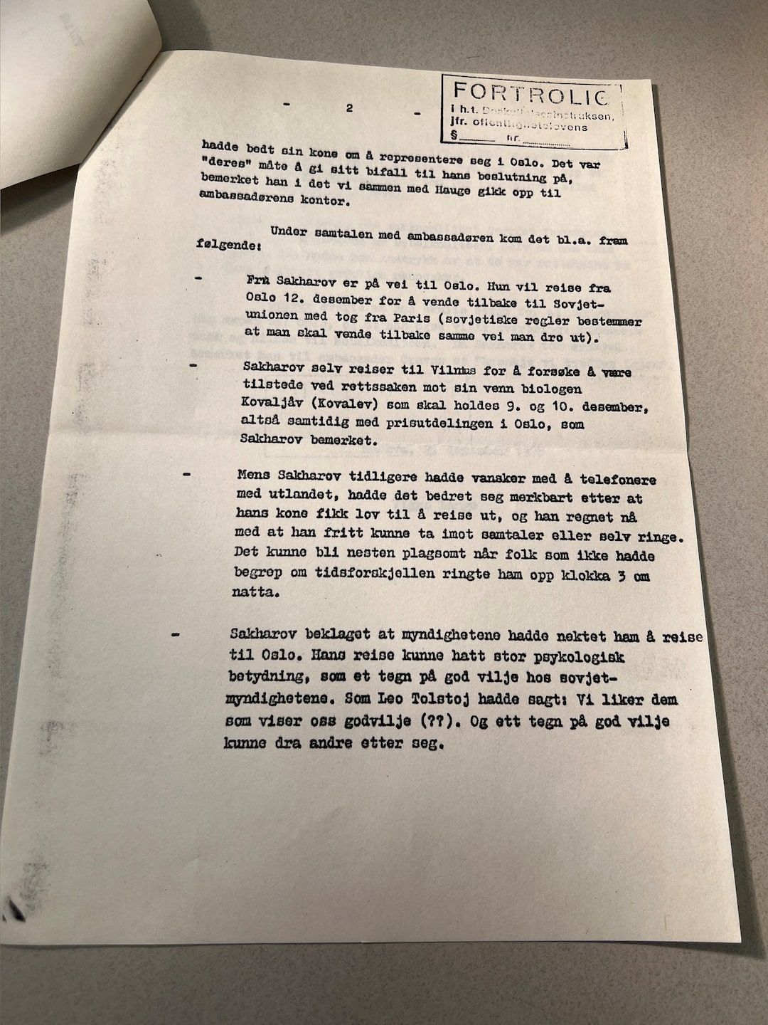 朗格随后打电话给挪威大使佩特·格拉弗,格拉弗在大使馆的图书馆与萨哈罗夫会合。在那里,萨哈罗夫请求格拉弗确保将文件转交给他的妻子,叶莲娜·博纳,当时在西欧。格拉弗说,他会根据备忘录。## ‘国家和军事机密’
