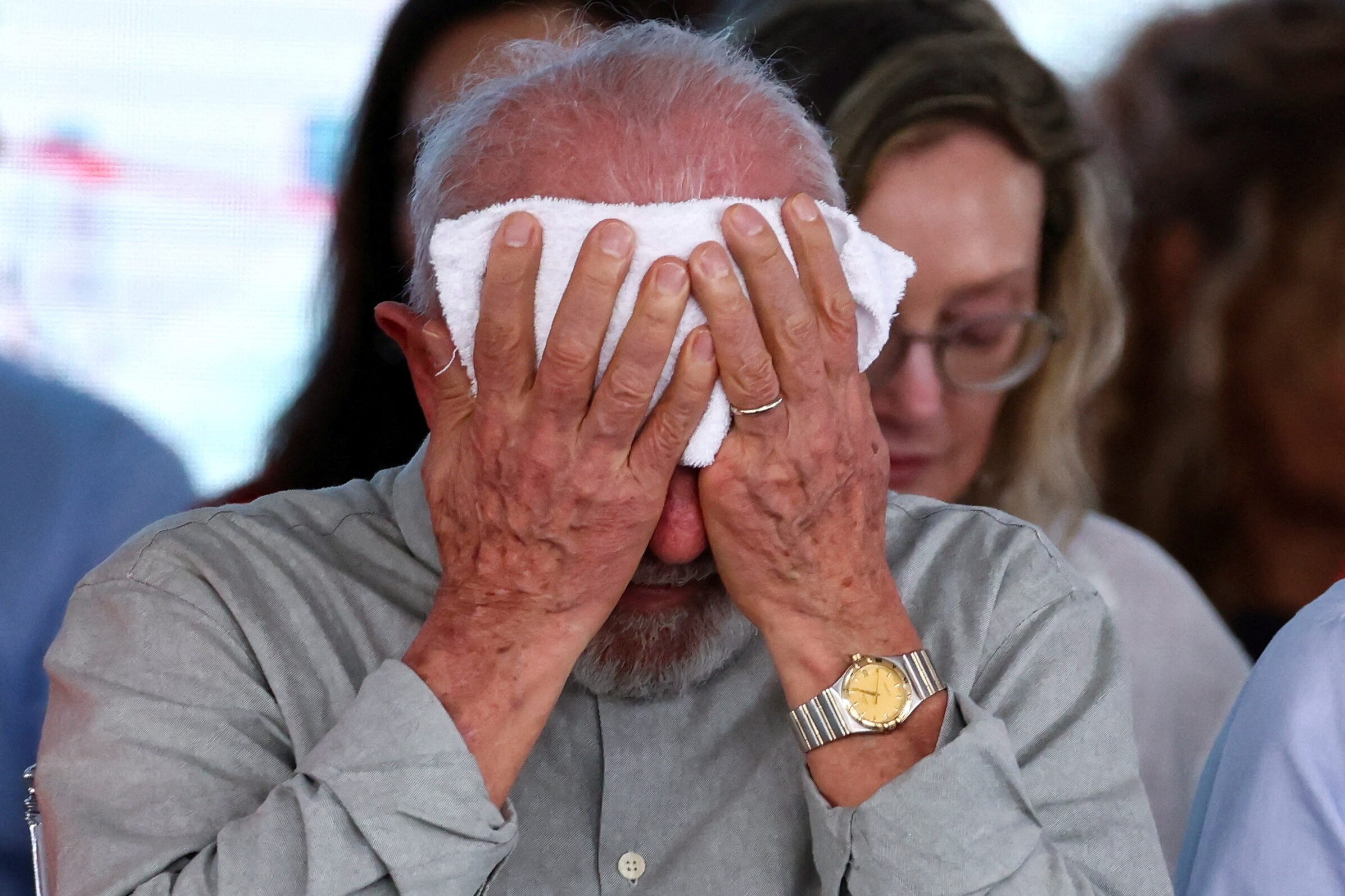 总统路易斯·伊纳西奥·卢拉·达·席尔瓦在里奥格兰德(RS)举行的仪式上擦脸