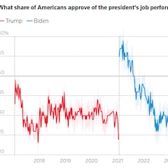 到目前为止,公众对特朗普的工作表现的支持率仍高于他2017-2021年第一任期的大多数时间,也高于他的前任,民主党人乔·拜登在其四年任期内的支持率。