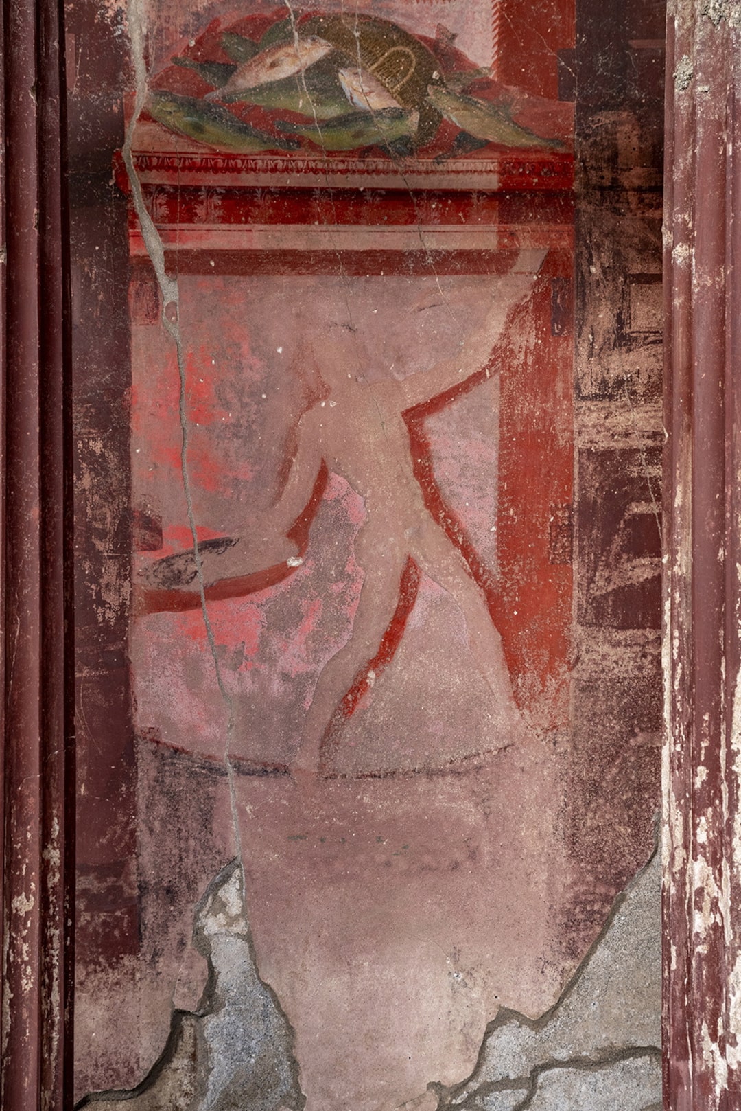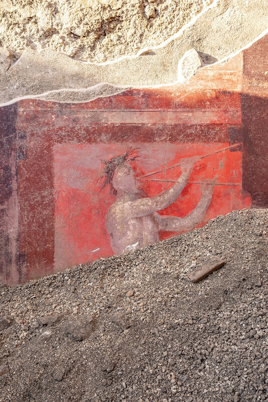 这幅壁画的年代为公元前40-30年,生动地描绘了处于仪式狂喜状态的狄俄尼索斯追随者,跳舞和狩猎,类似于100年前发现的附近神秘别墅的壁画。