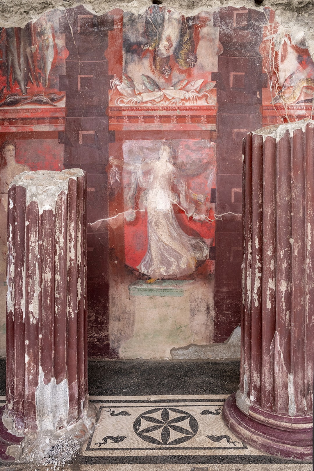 中央是一幅优雅着装的女性壁画,她可能在等待被引入神秘仪式。