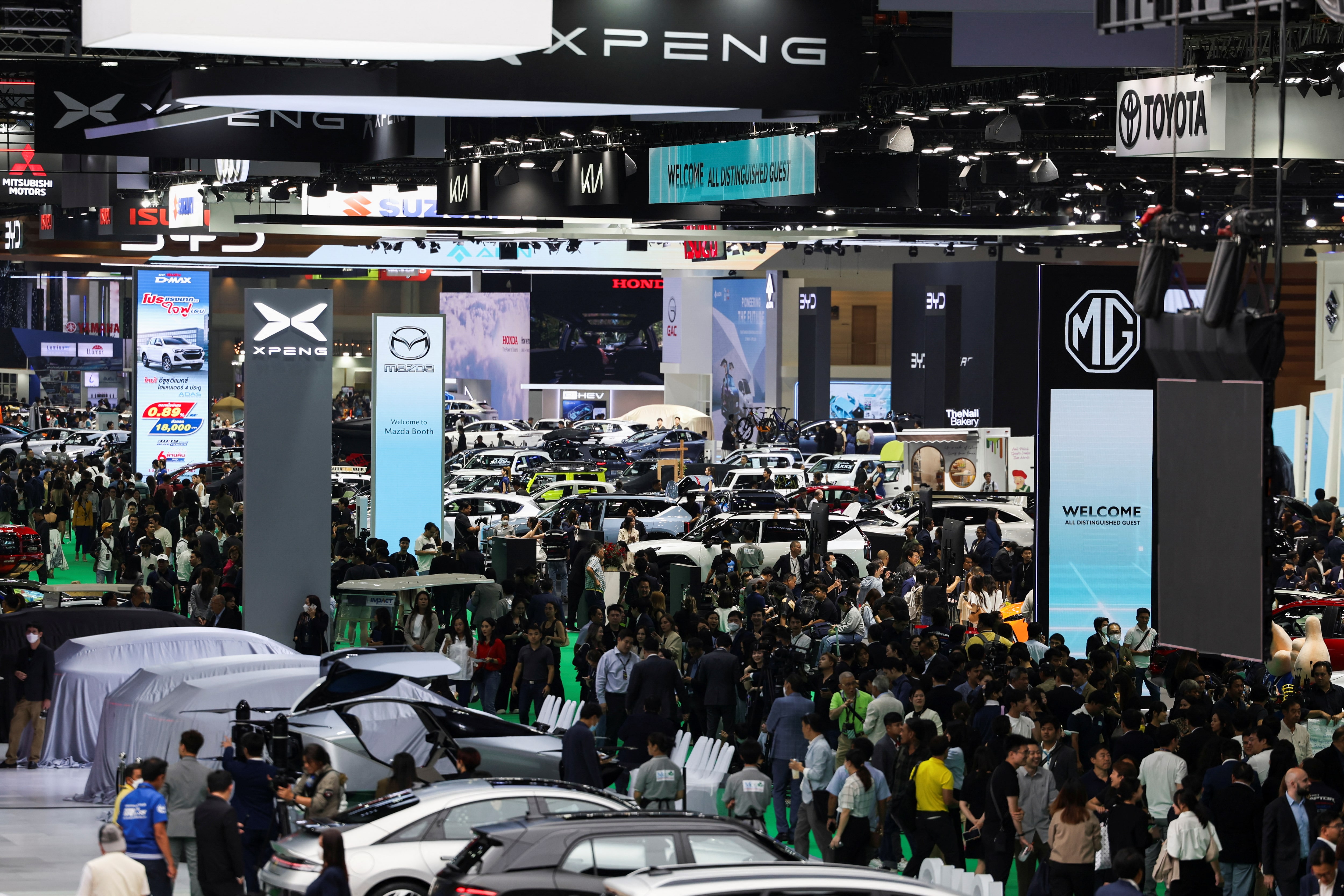 2024年3月25日,泰国曼谷第45届曼谷国际汽车展的全景。路透社/查利尼·提拉苏帕/档案照片曼谷,2月27日(路透社)- 泰国正在与汽车制造商进行初步讨论,计划推出汽车以旧换新和报废方案,以期振兴受到数十年来最大危机影响的行业,三位行业官员和两位消息人士表示。