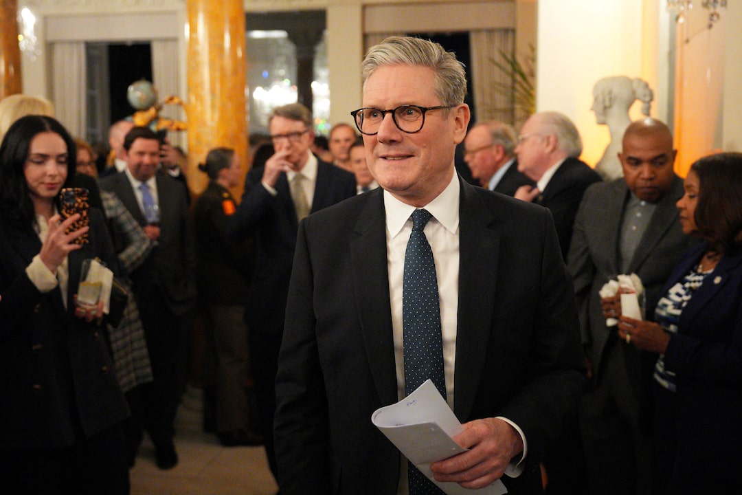第1项,共4项 英国首相基尔·斯塔默在2025年2月26日于华盛顿特区的英国大使官邸举行的欢迎招待会上发言。 卡尔·库特/池 via 路透社