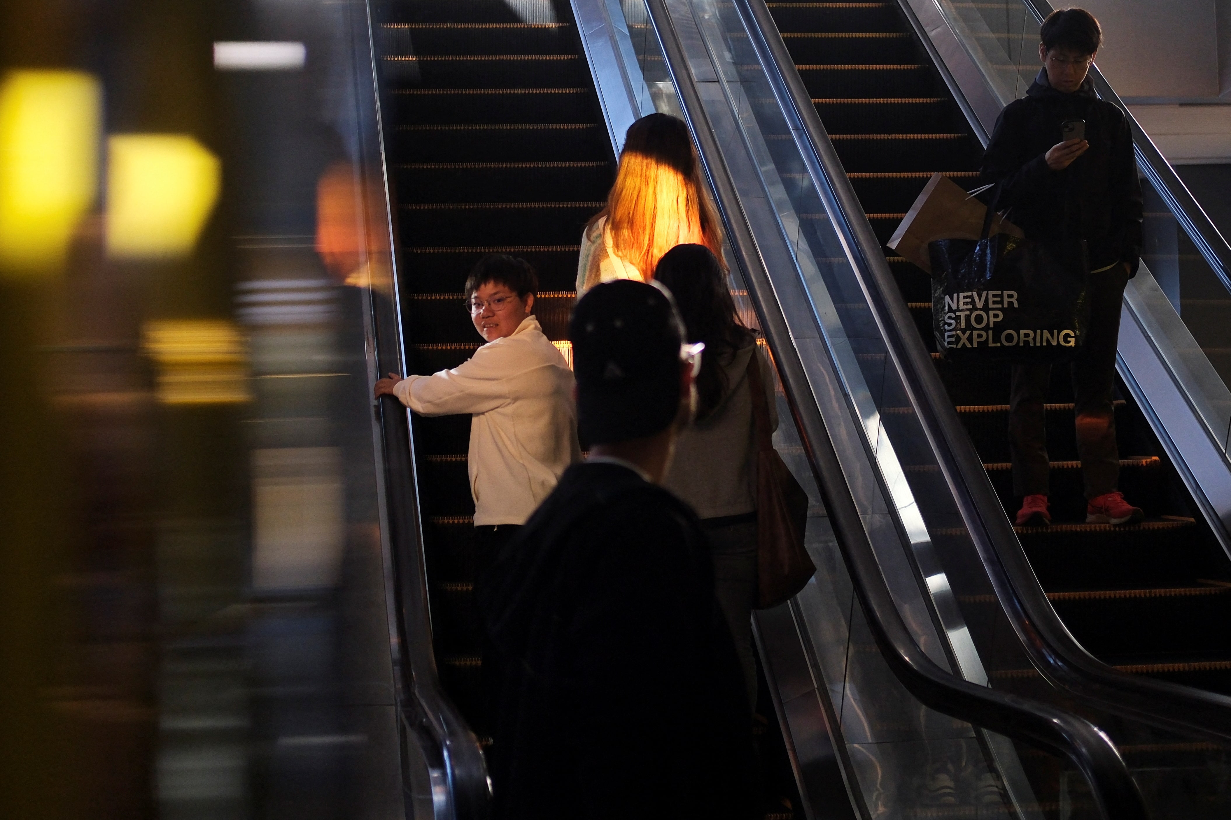 人们在中国北京的一个购物中心乘坐自动扶梯,2024年10月7日。路透社/弗洛伦斯·罗/档案照片北京,2月28日(路透社)- Coco Wen利用中国的消费补贴为自己购买了一部新iPhone,价格约为原价的三分之二。同时,她在其他方面削减开支。